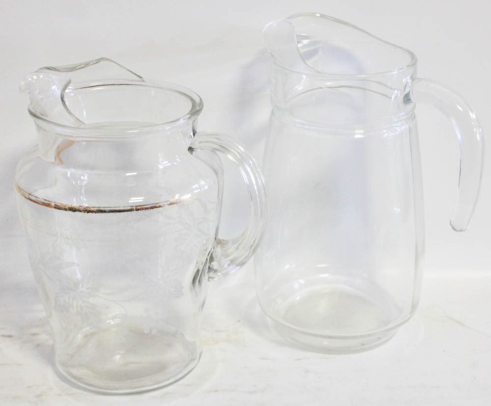 2 LARGE CLEAR GLASS PITCHERS