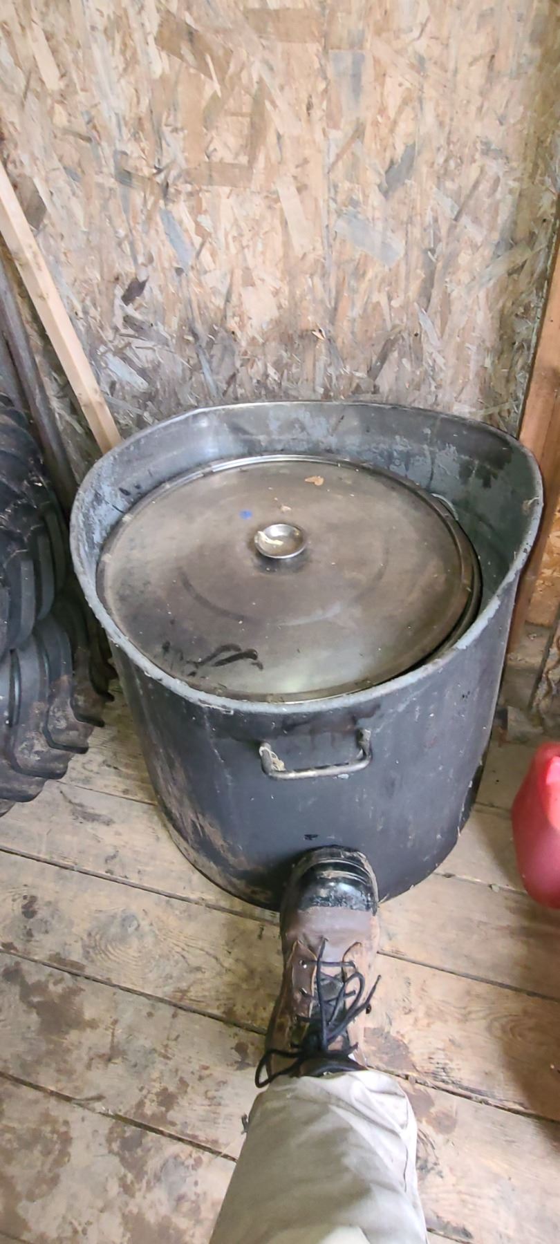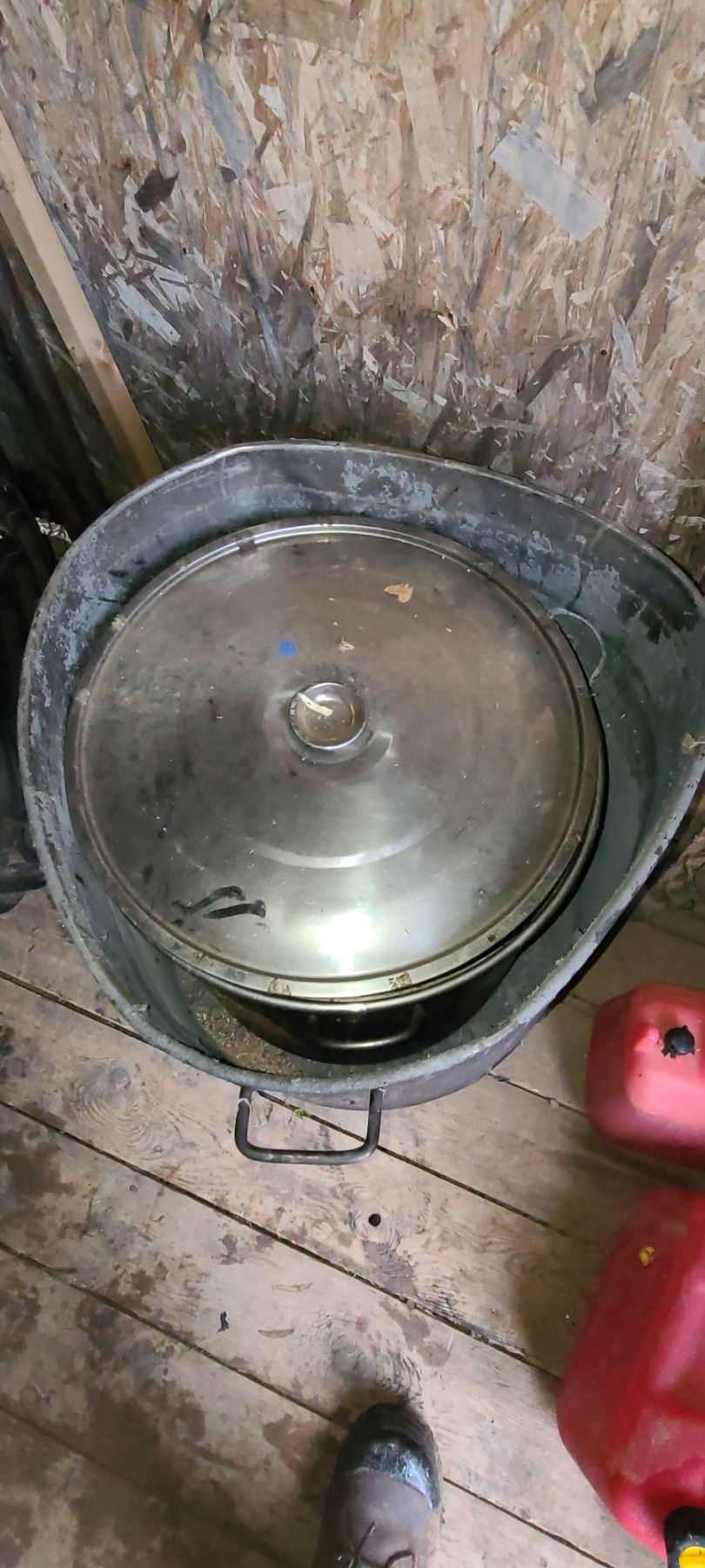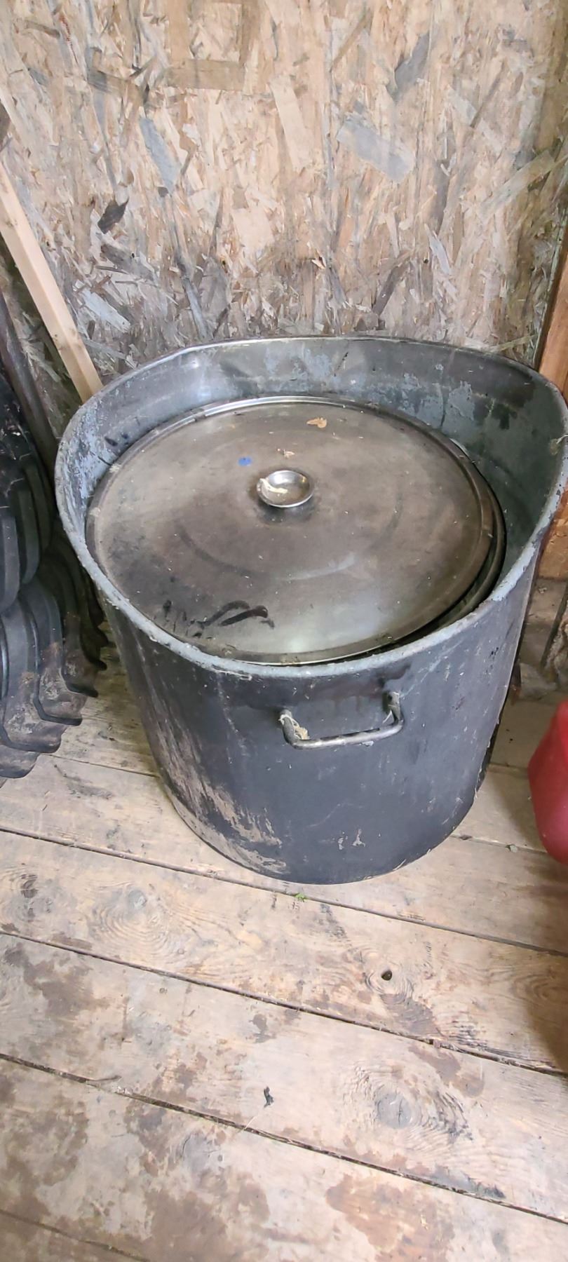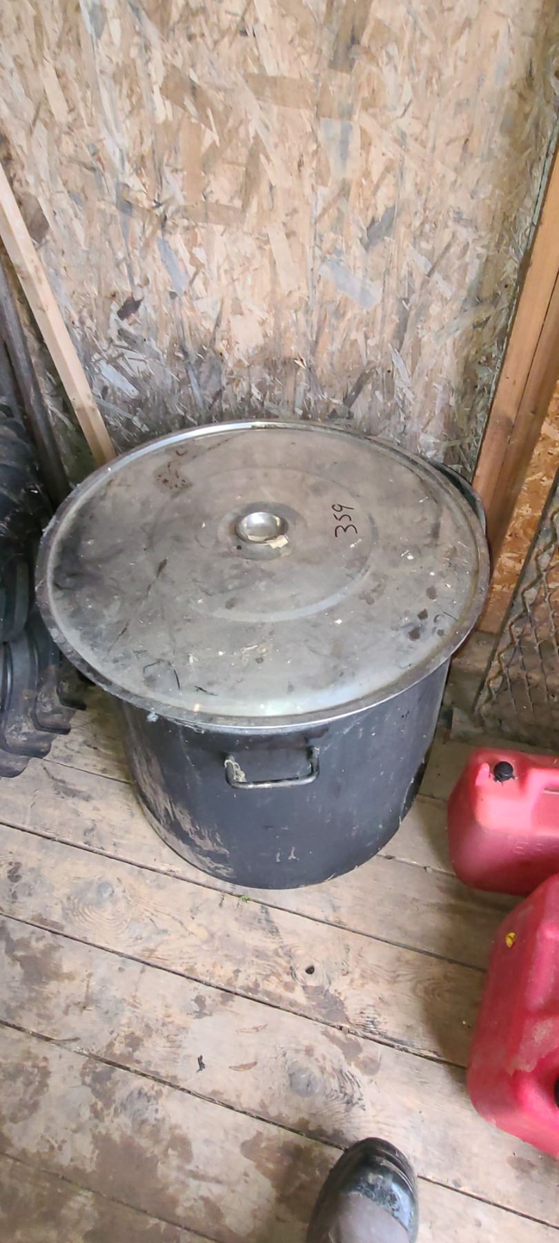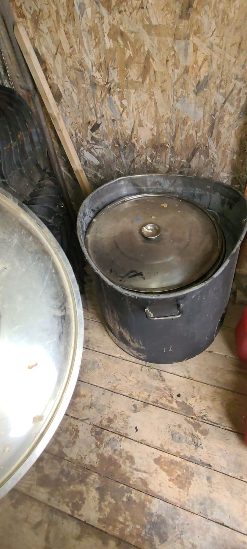 2 LARGE SS POTS 24" AND 18" DIA. AND 18 TO 22" DEEP C/W LIDS