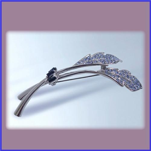 2 LEAVES BLUE PIN BROOCH GOLD SWAROVSKI CRYSTALS