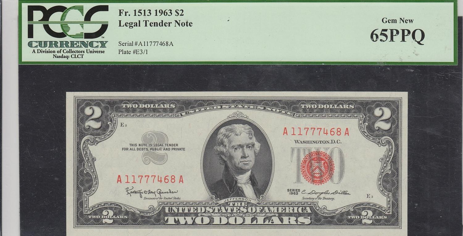 $2 LEGAL TENDER RED SEAL PCGS GEM 65
