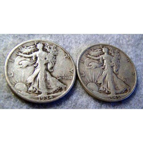 2 LIBERTY WALKING HALF DOLLARS - 1934 & 1945S