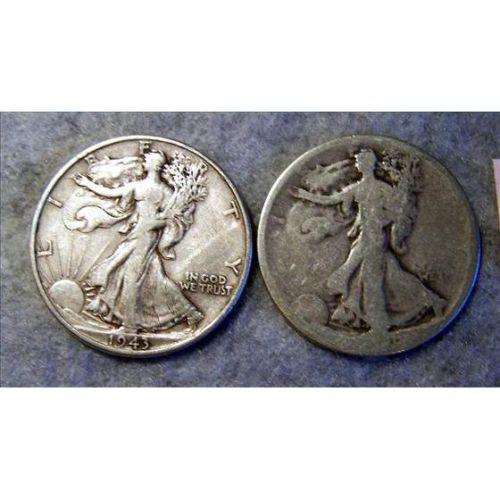 2 LIBERTY WALKING HALF DOLLARS 1943 AND ONE WITHOUT DATE