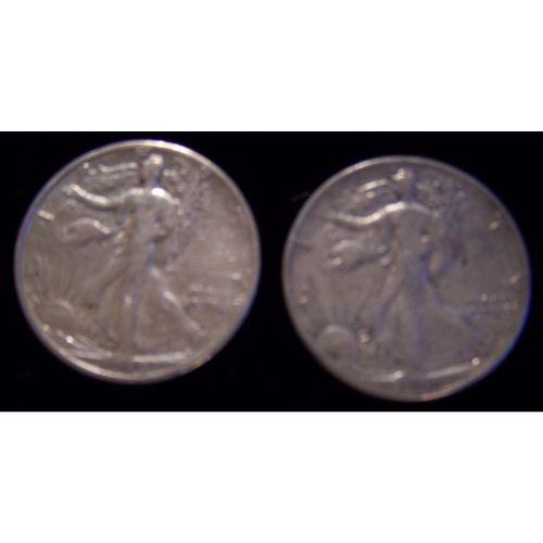 2 LIBERTY WALKING HALF DOLLARS - 1945D & 1941