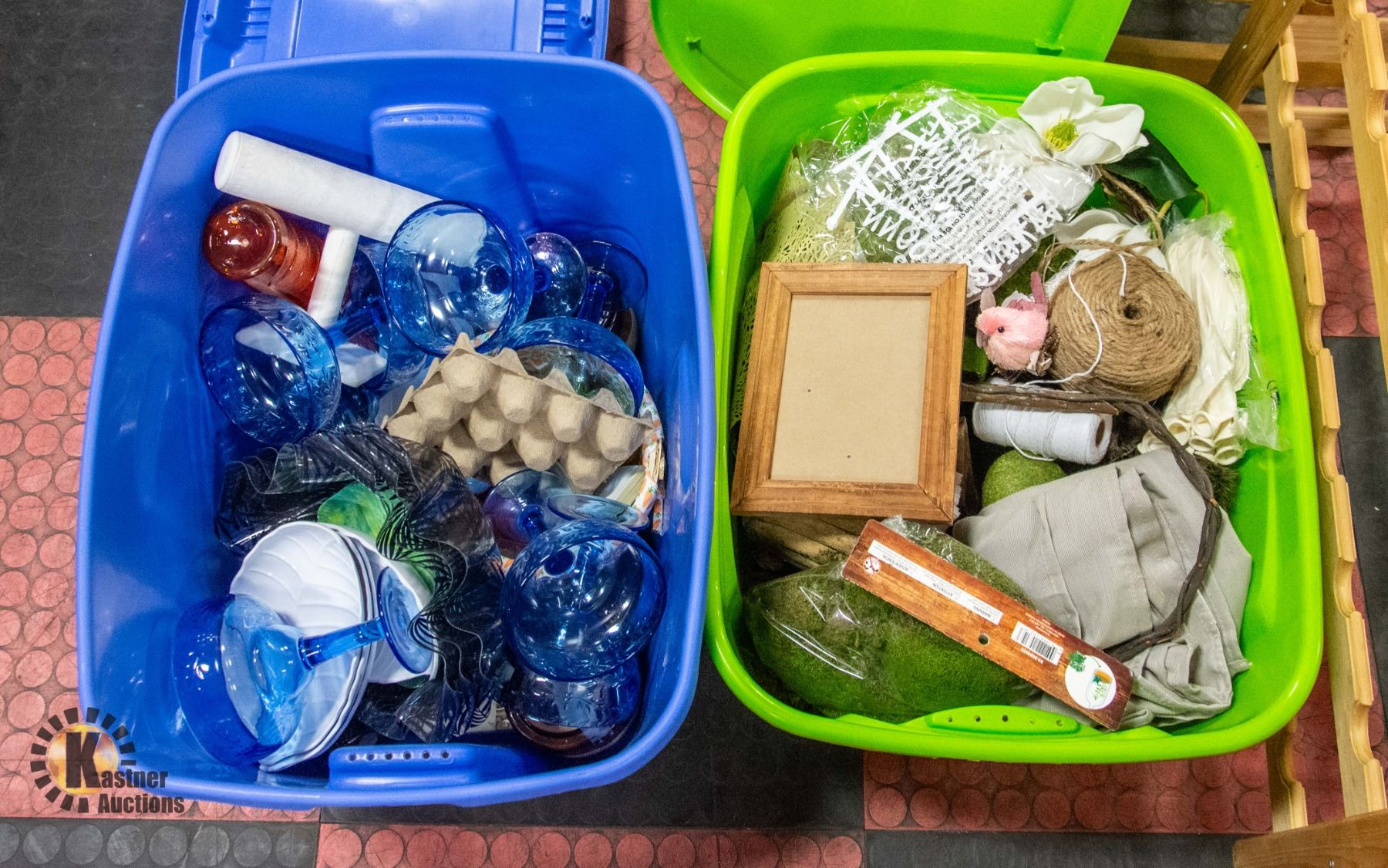 2 LIDDED TOTES WITH VARIOUS HOUSEHOLD CONTENTS