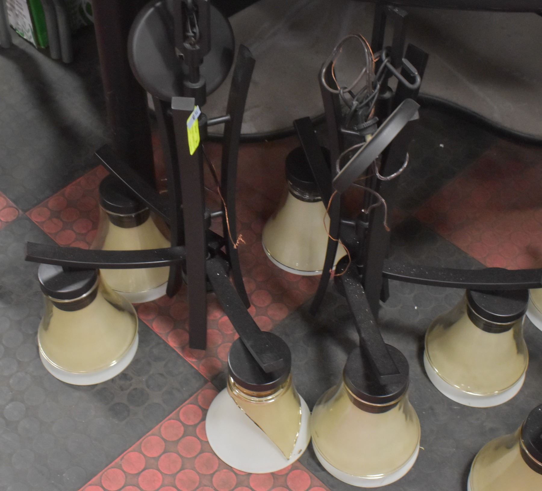 2 LIGHT FIXTURES - BROKEN GLASS SHADE ON ONE