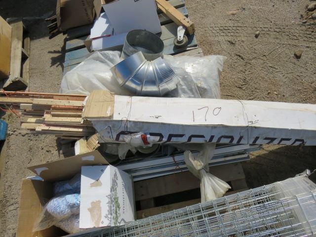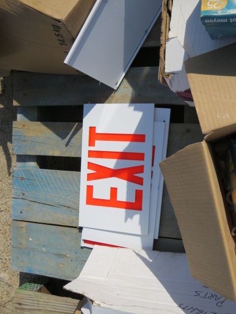 2 LIGHTING PALLETS, GALV ELBOWS, FORM TIES, THREADED ROD EXIT SIGNS