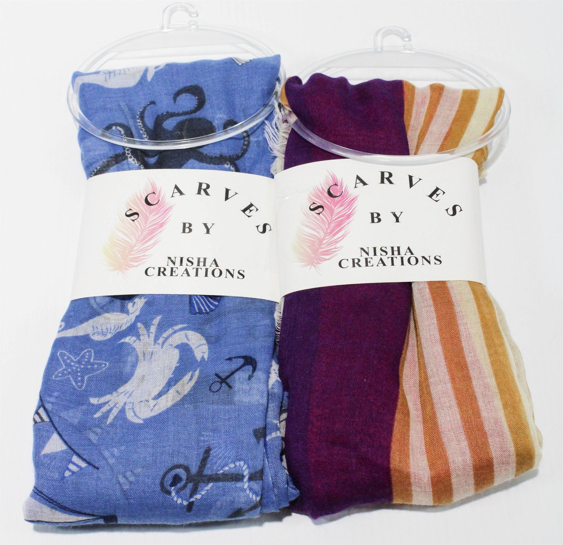 2 LIGHTWEIGHT NISHA CREATIONS SCARVES