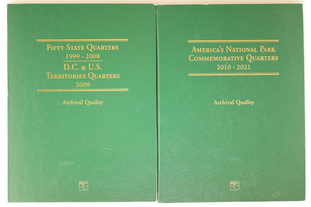 CONDITION: FIFTY STATE QUARTERS 1999-2008 / D.C. & U.S. TERRITORIES QUARTERS 2009 AND AMERICA'S NATIONAL PARK COMMEMORATIVE QUARTERS 2010-2021. NO COINS INCLUDED.