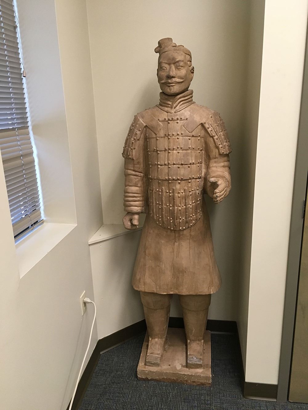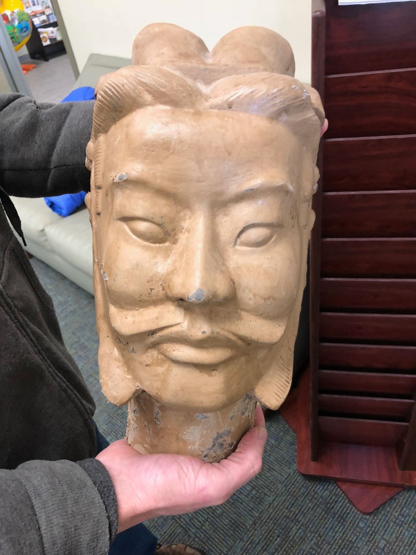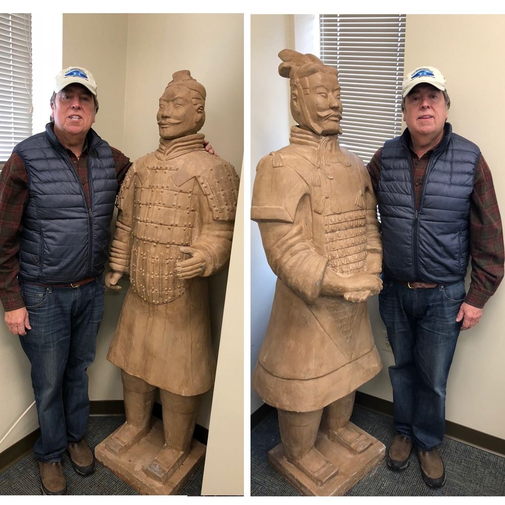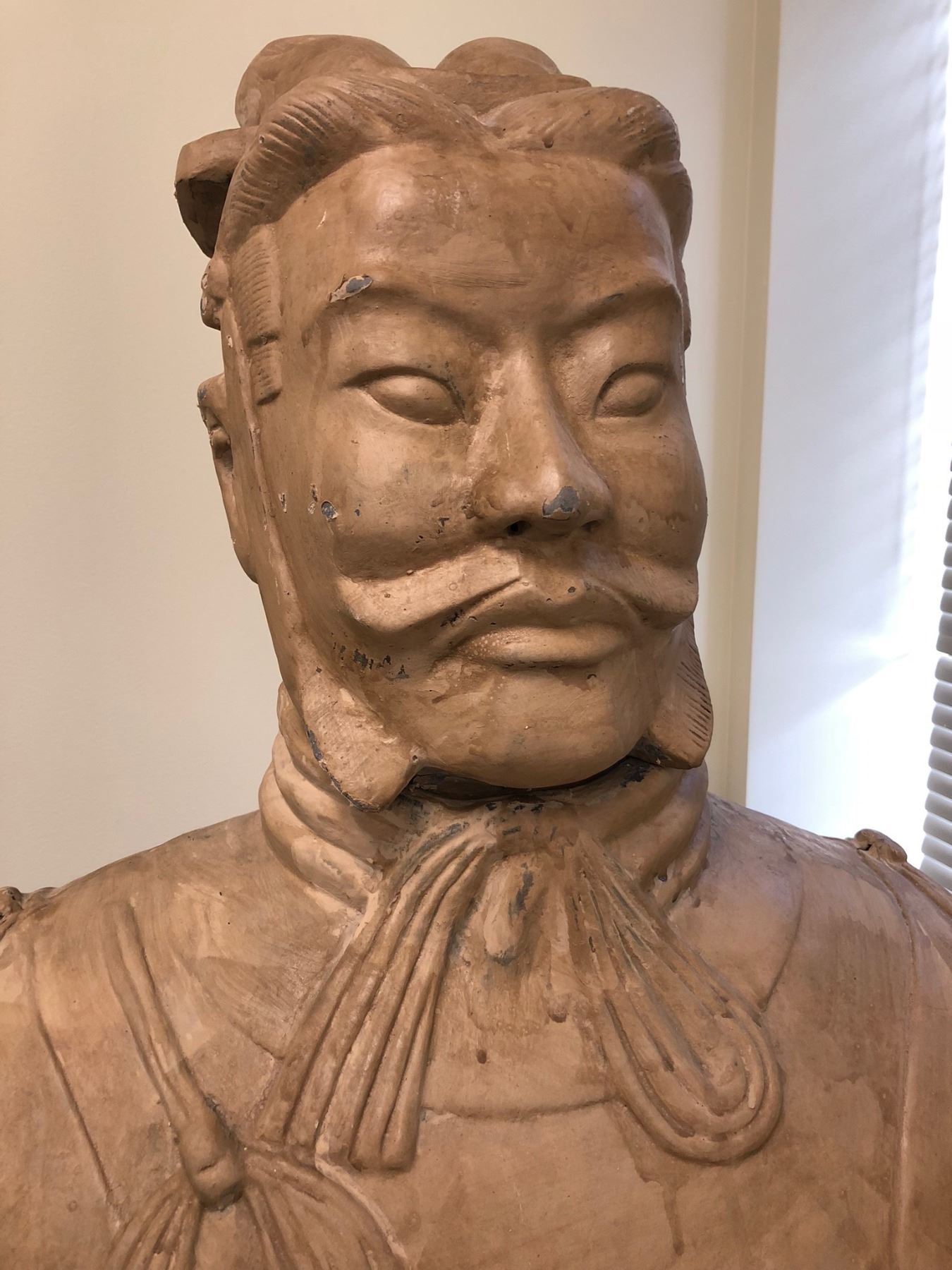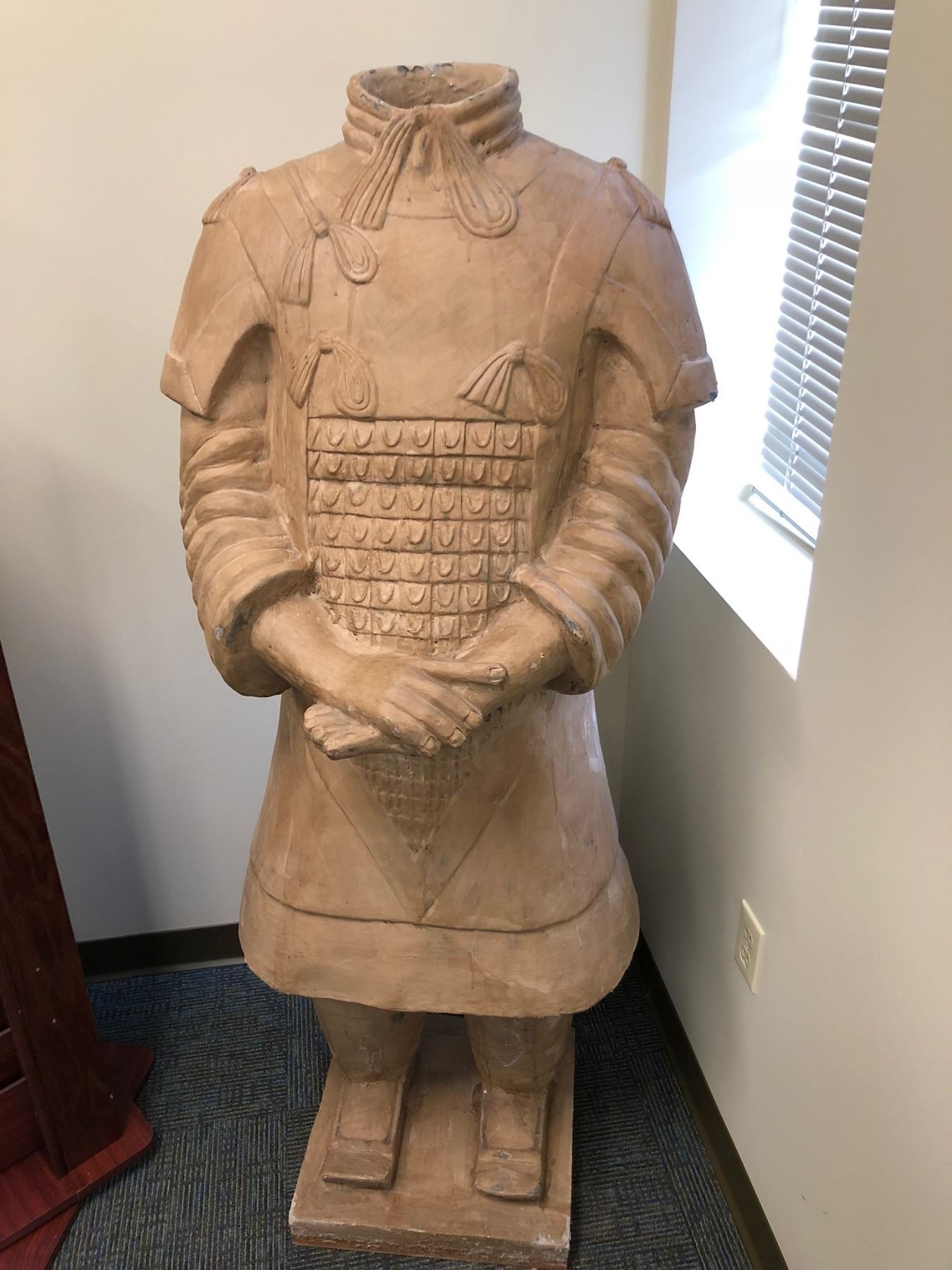 2 decorative life size stone warriors, great statement pieces for gardens or home entries. These magnificent statues were purchased overseas and shipped back to America. We can recommend shippers to adequately handle shipping this lot to your location. These are a phenomenal pair of stone warriors.