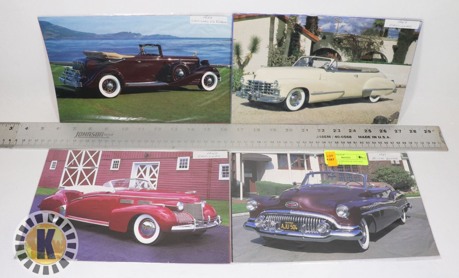 2) LOT OF 4 PHOTOS OF VINTAGE CARS, 11" X 7".
