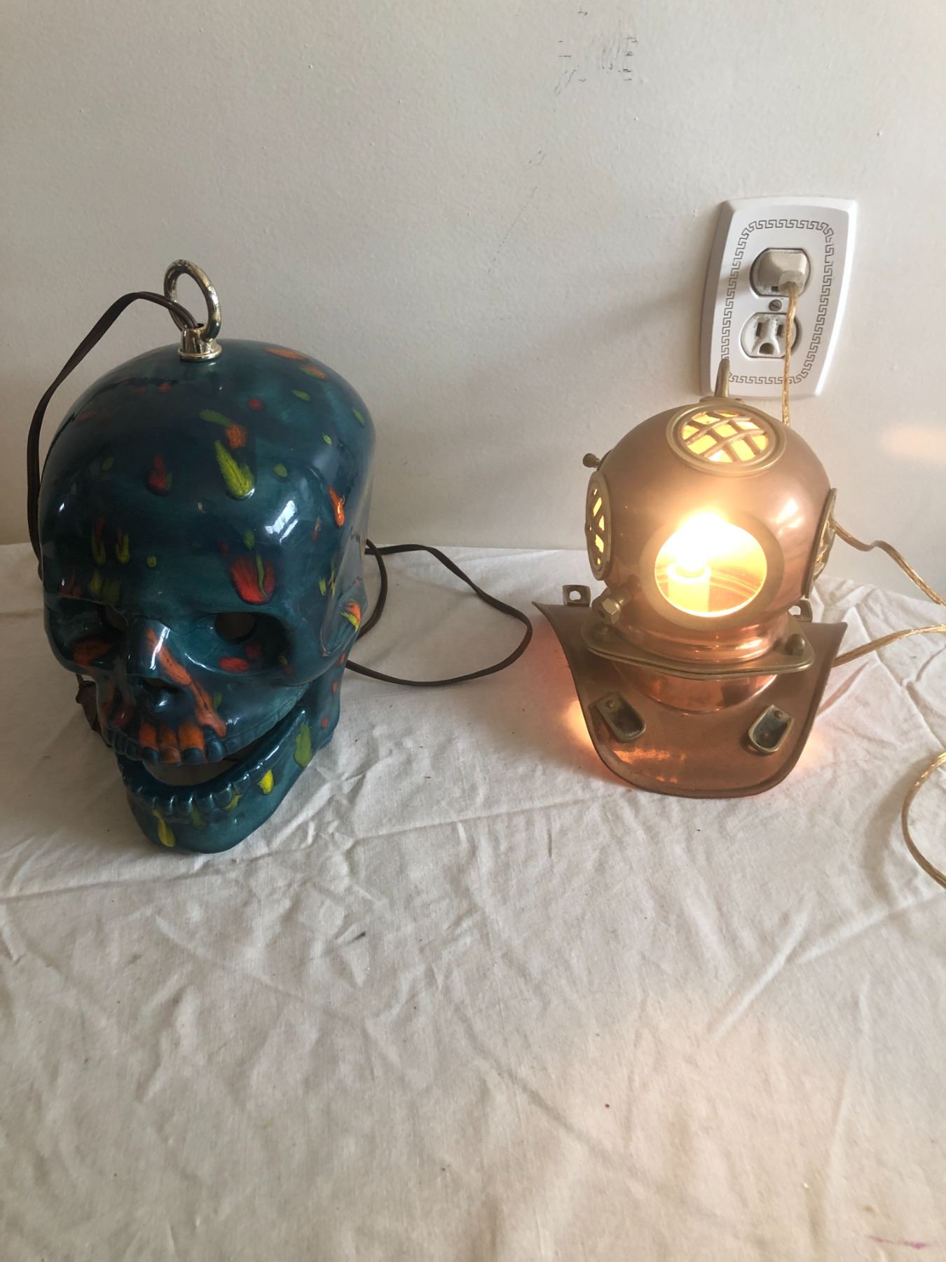 Both lamps work. Skull lamp needs new bulb but did turn on