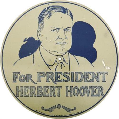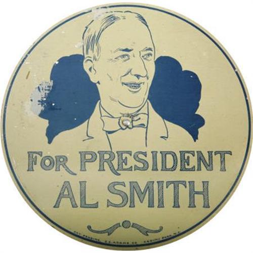 <B>Pair of Large 1928 Presidential Campaign License Plate Attachments, </B></I>8, one disk features Herbert Hoover, and the other, Al Smith. Marked at the bottom, Pat. Pending S.S. Adams Co. Asbury Park, N.J.. Both have light surface wear else fine.<BR><BR><b>Shipping:</b> Miscellaneous Collectibles, Smal (<a target="_blank" href="http://www.heritageauctions.com/common/shipping.php">view shipping information</a>)