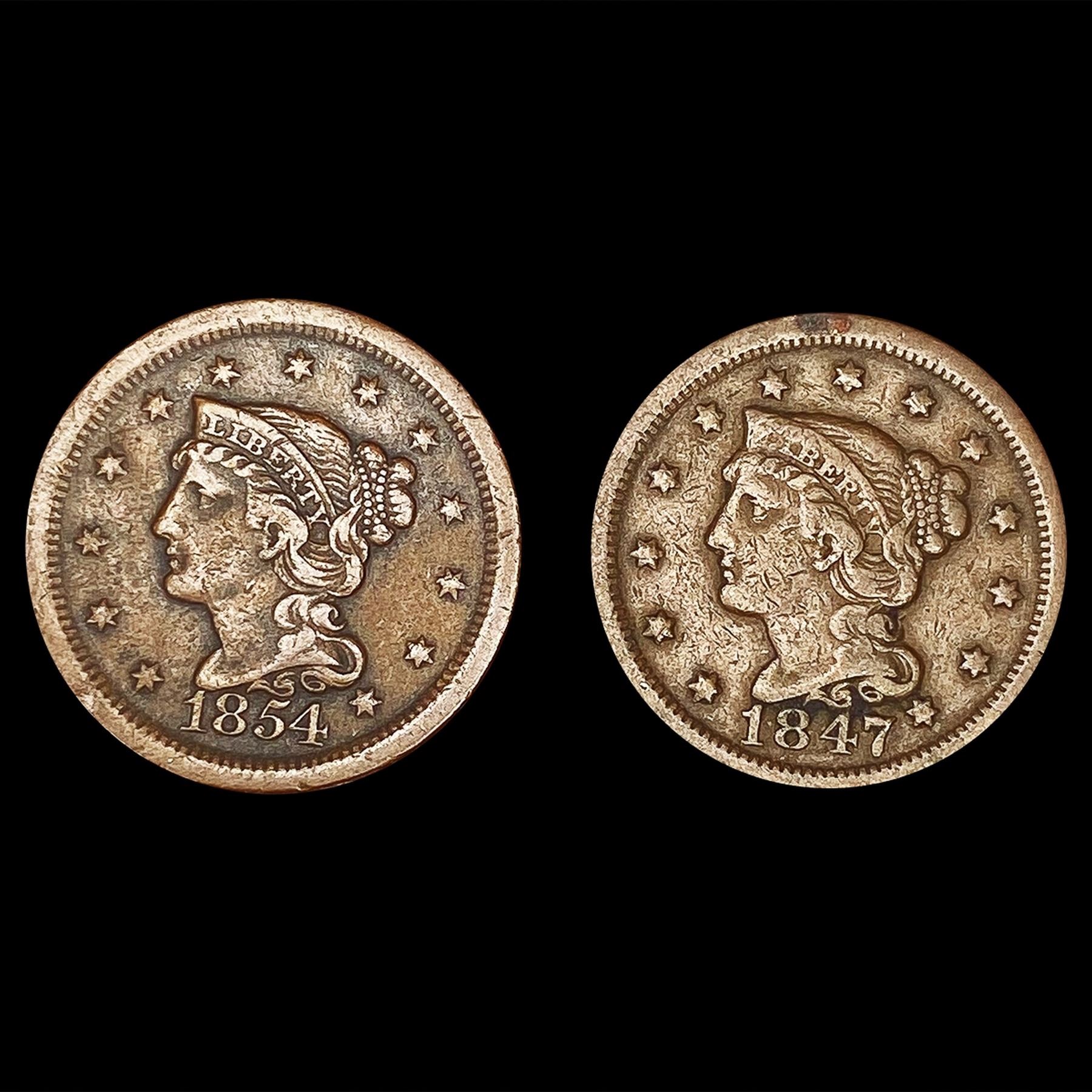 (2) Large Cents (1847, 1854) NICELY CIRCULATED