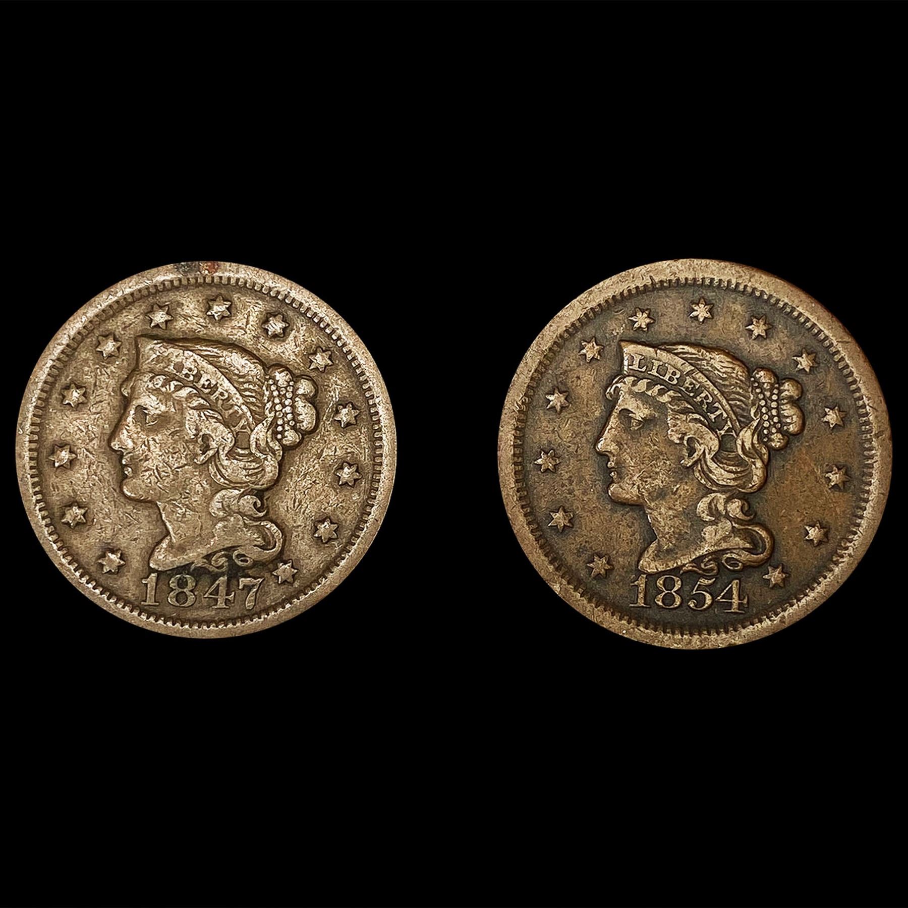 (2) Large Cents (1847, 1854) NICELY CIRCULATED