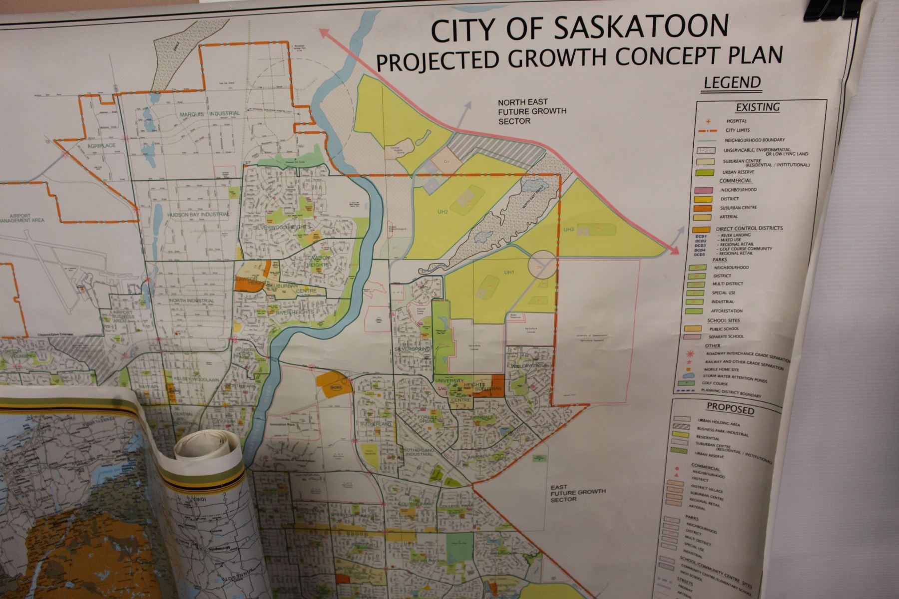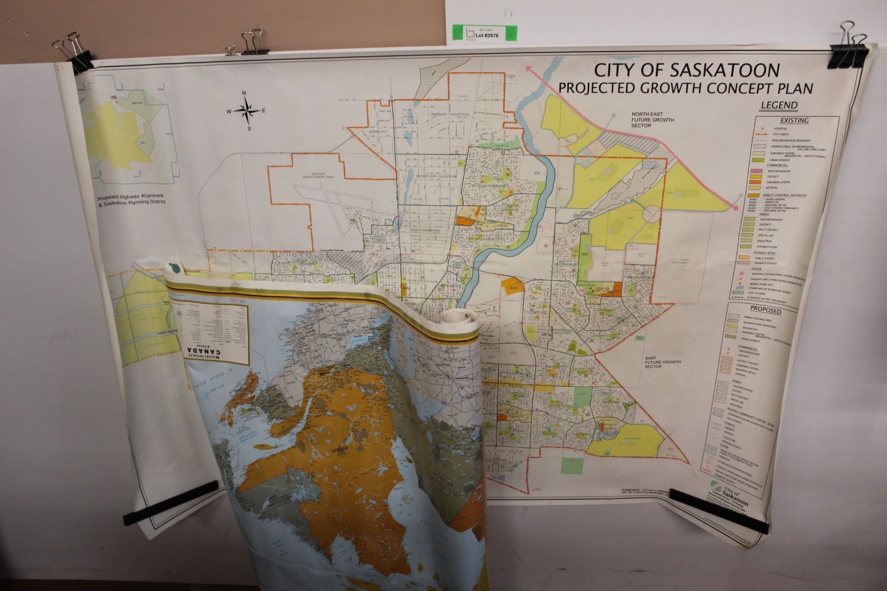 (2) Large Maps, City Of Saskatoon Growth Map, Canadian Cities Map w/ Sticky Tack