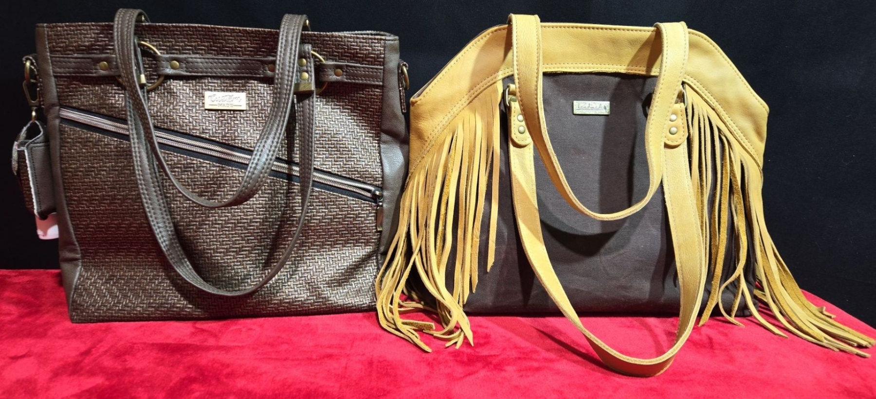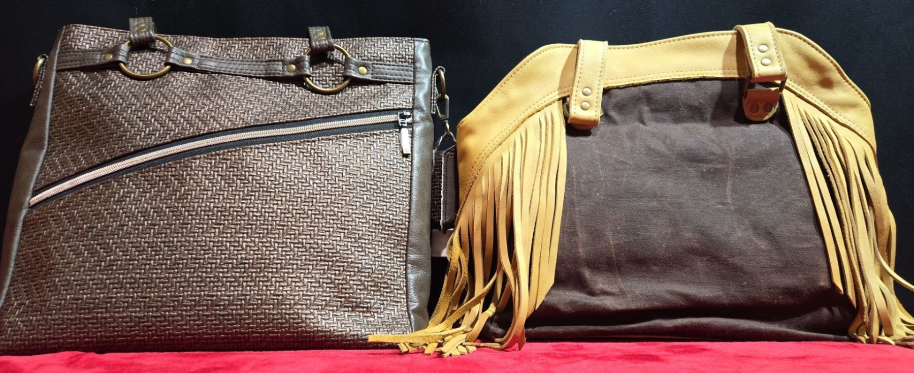2 Large Purses, Tween Fabric with Leather Bag and Leather Purse with Tassels