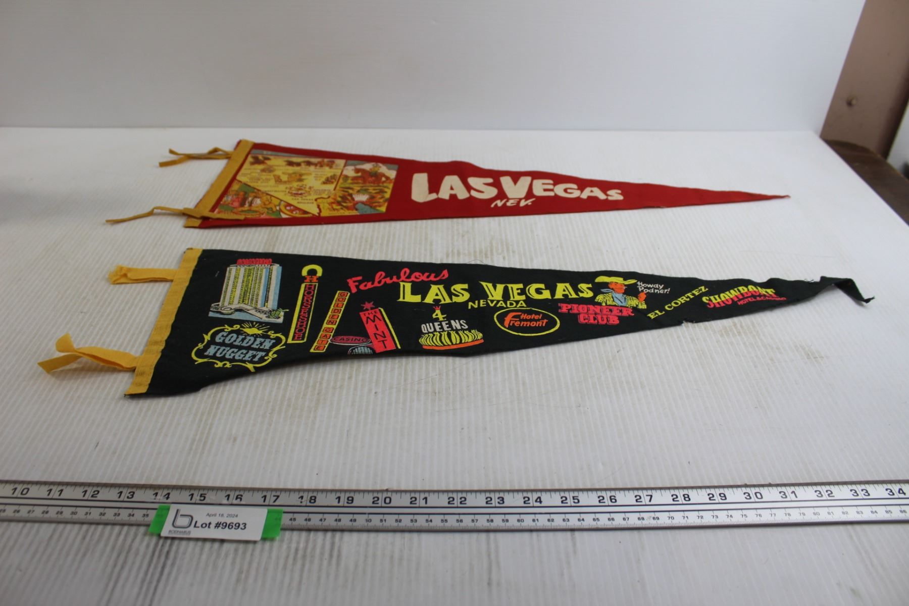 (2) Las Vegas Pennants - Largest Measures 27" x 8 3/4"