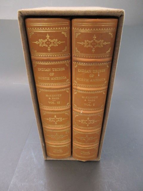 2 Leather Bound Books- "The Indian Tribes of North America"- McKenny & Hall Authors- 10.5" X 7"