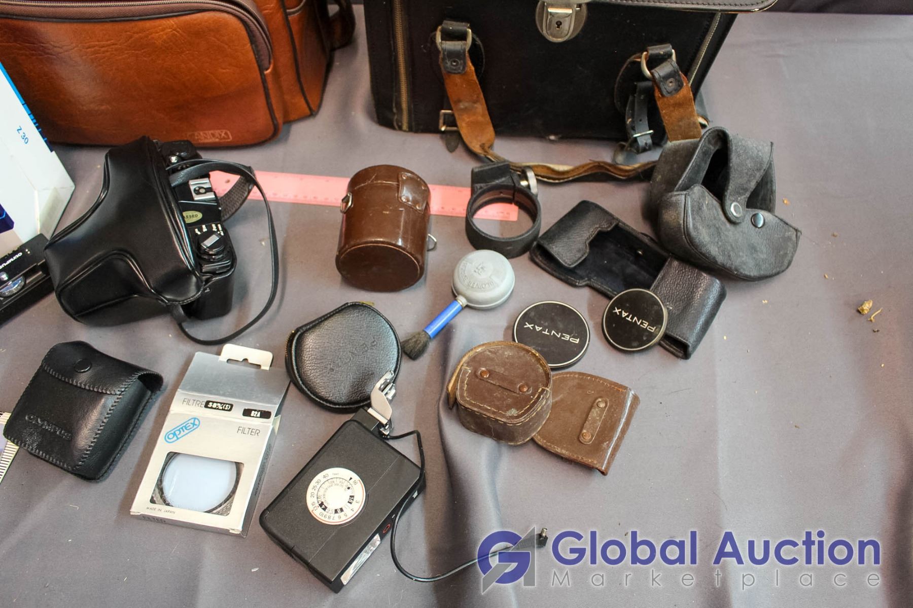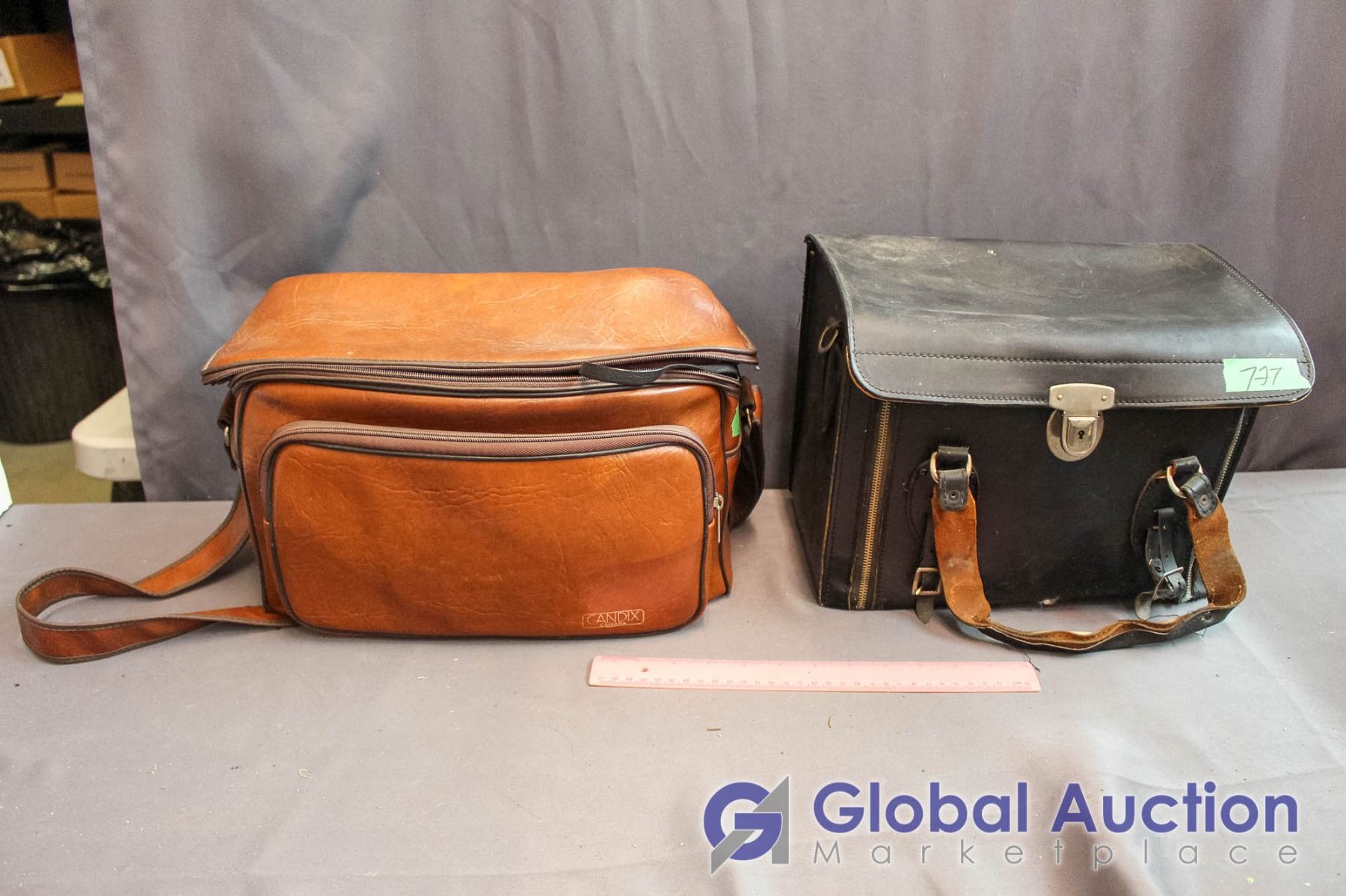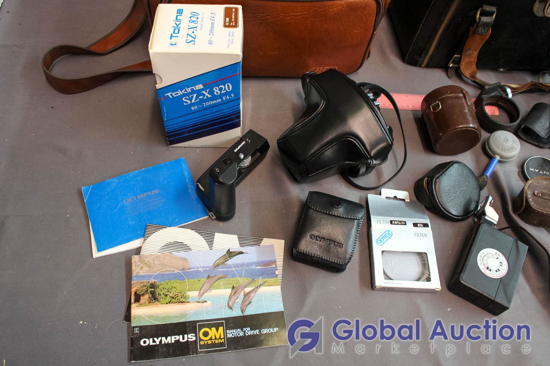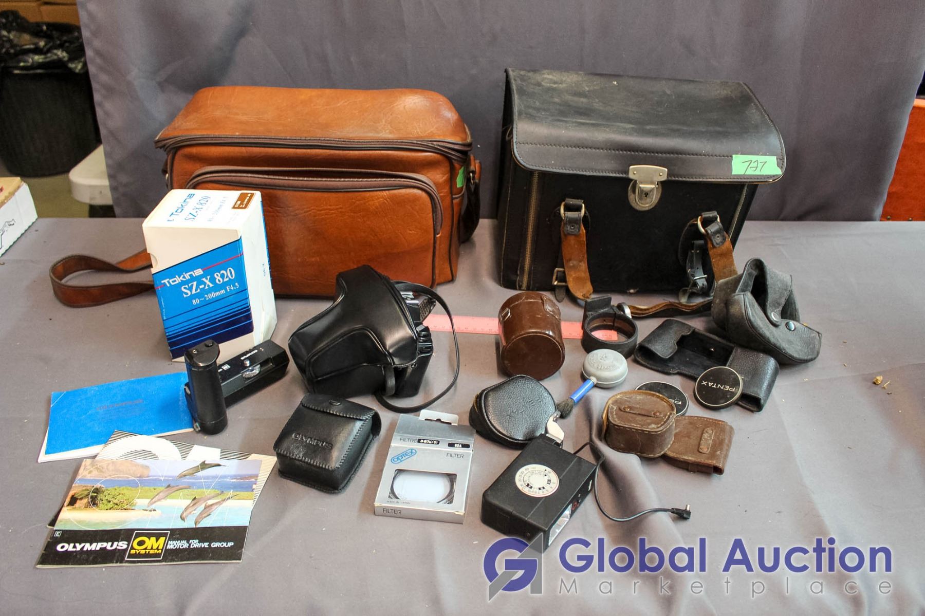 (2) Leather Camera Bags with Contents - Olympus Camera, Misc