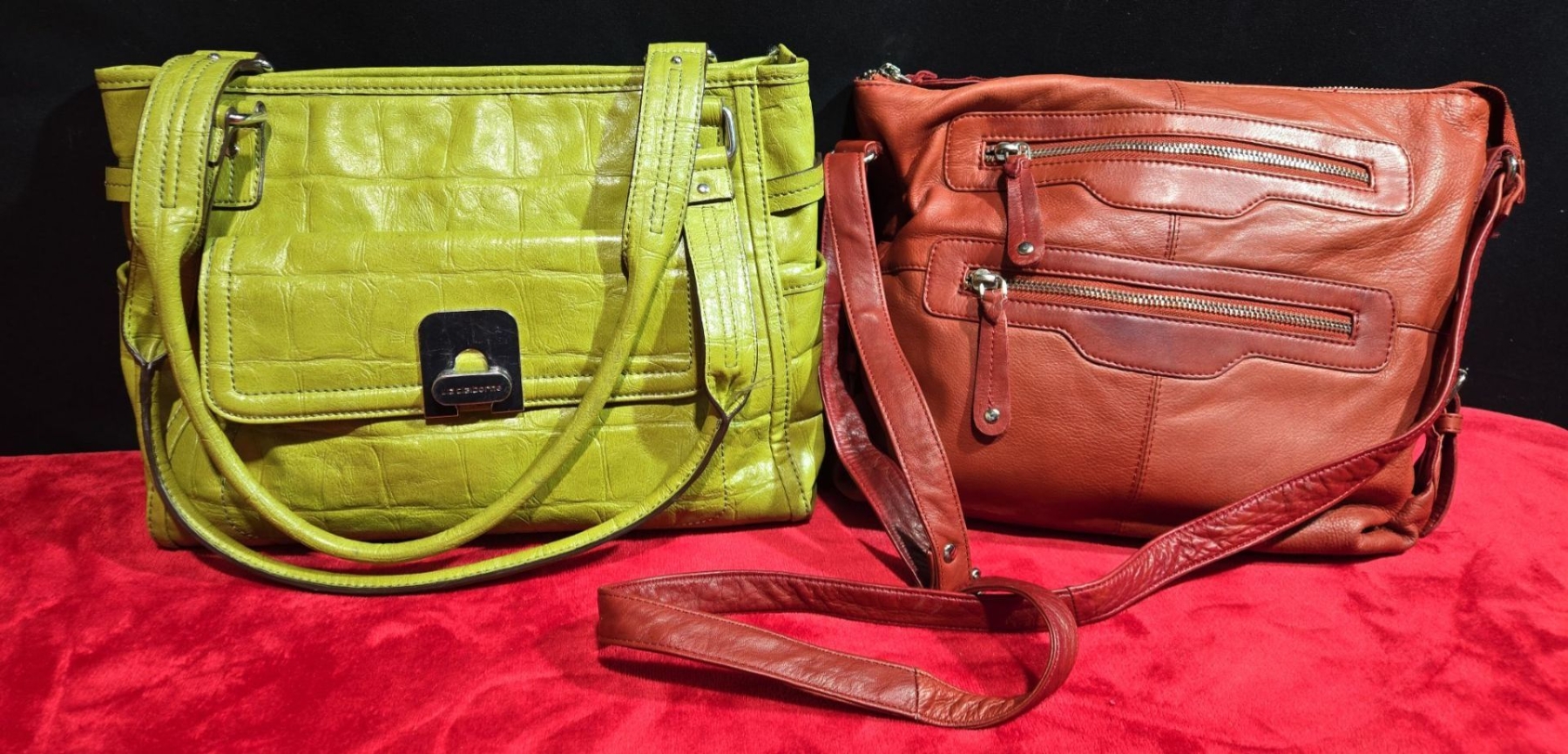 2 Leather Handbag/Purses, Yellow and Red Leather Bag