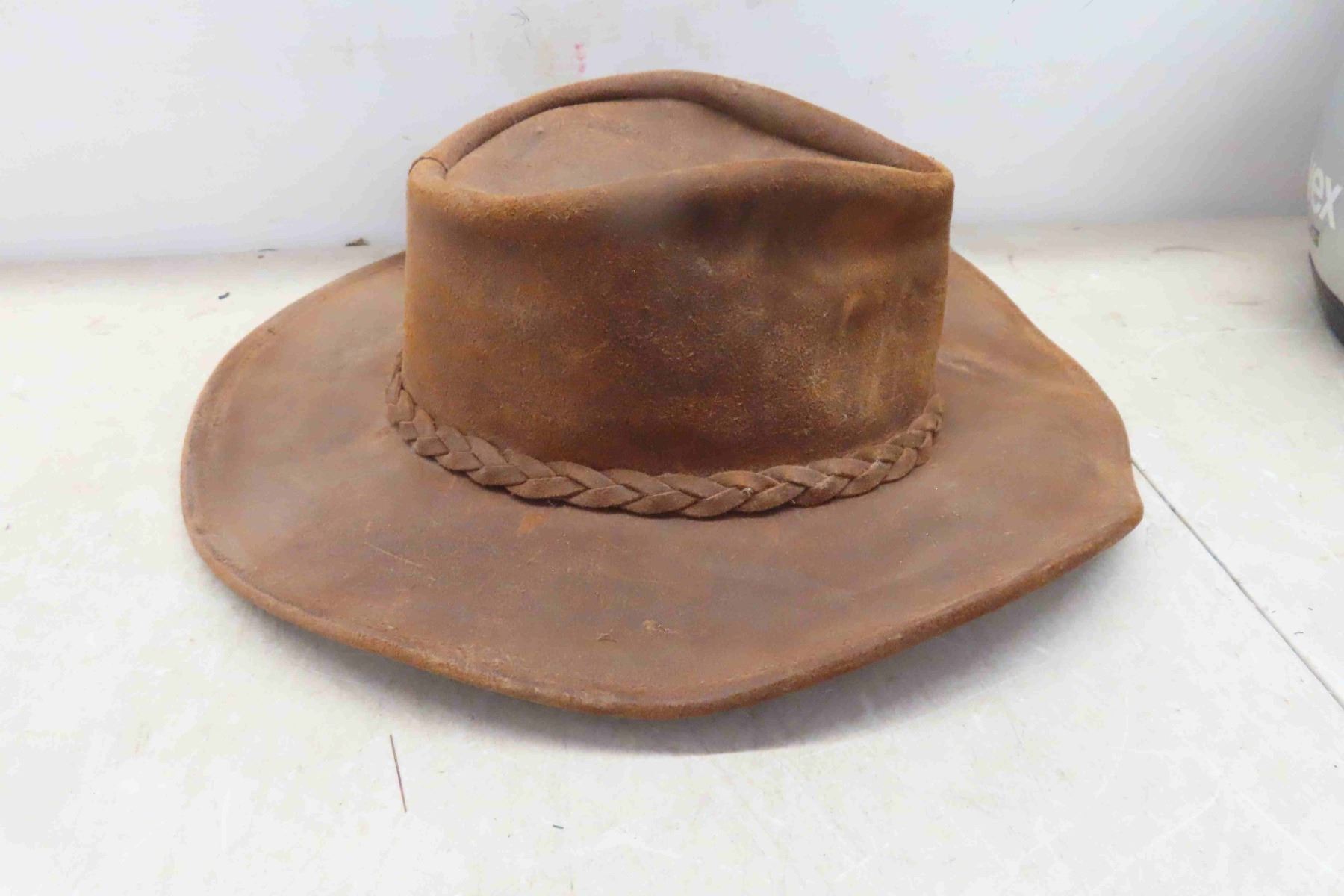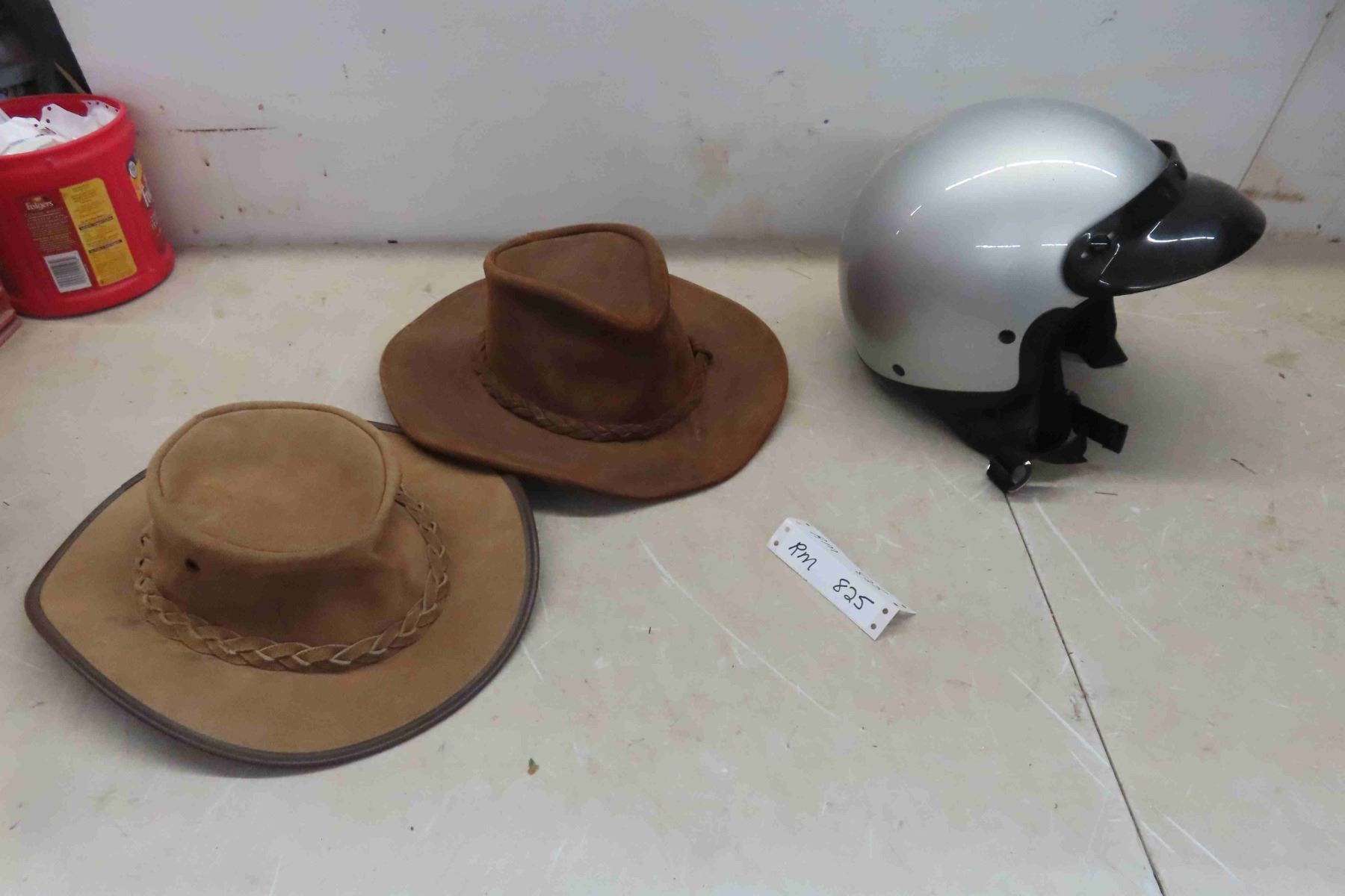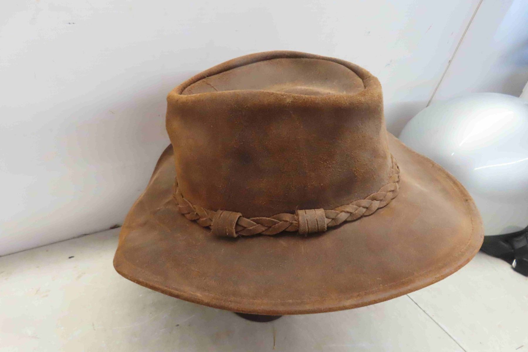 2 Leather Outback Australian Hats + Helmet Size Medium
