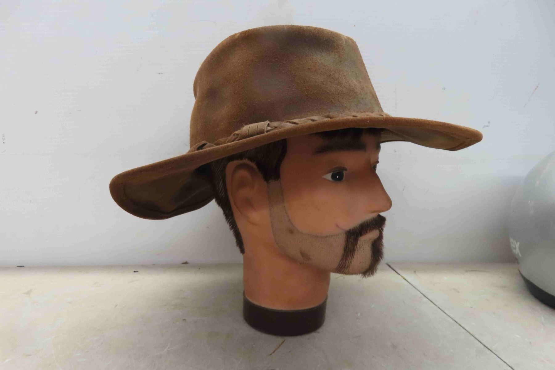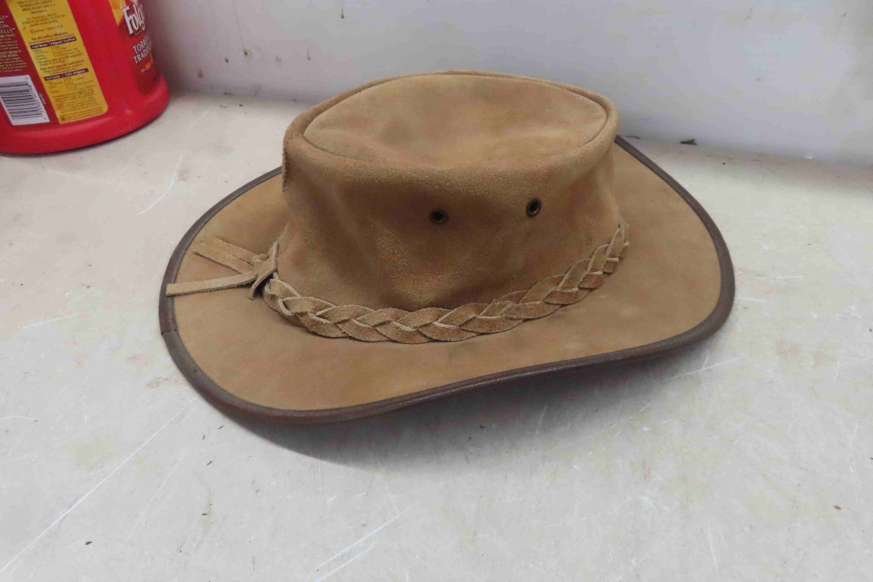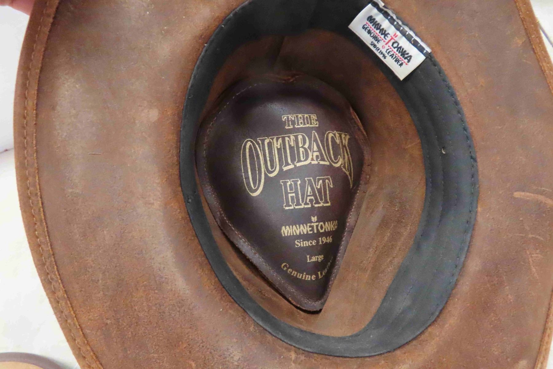 2 Leather Outback Australian Hats + Helmet Size Medium