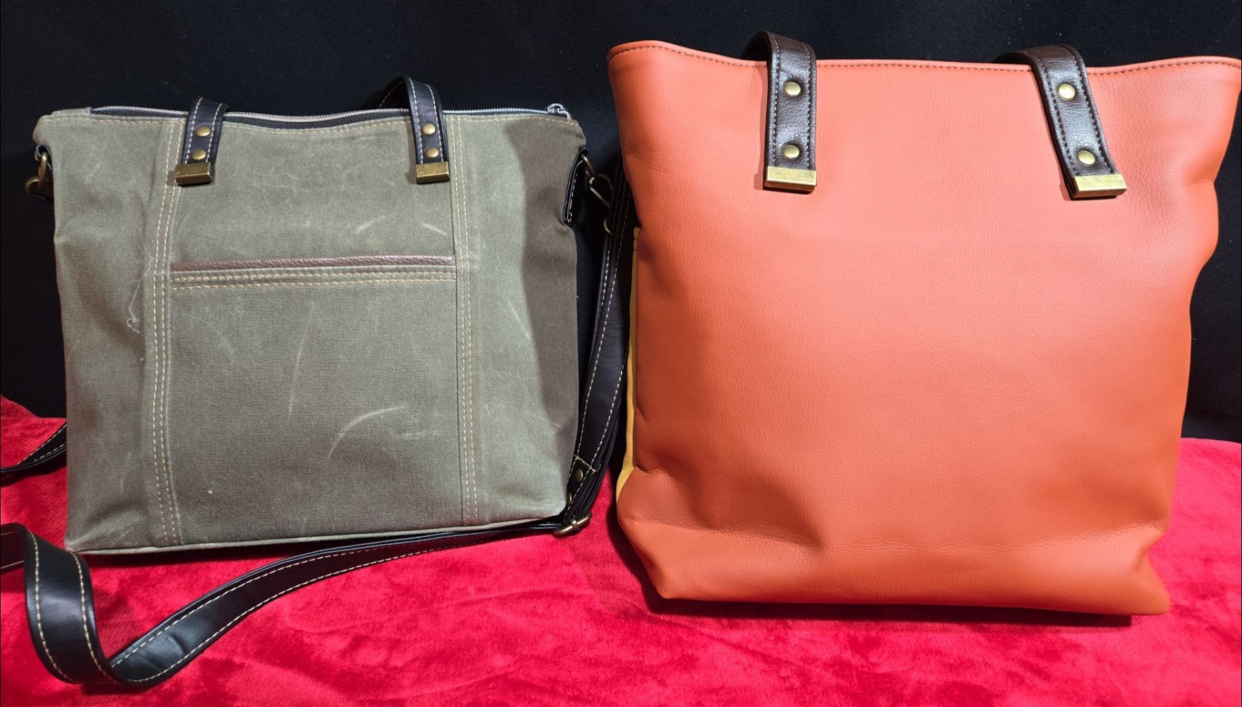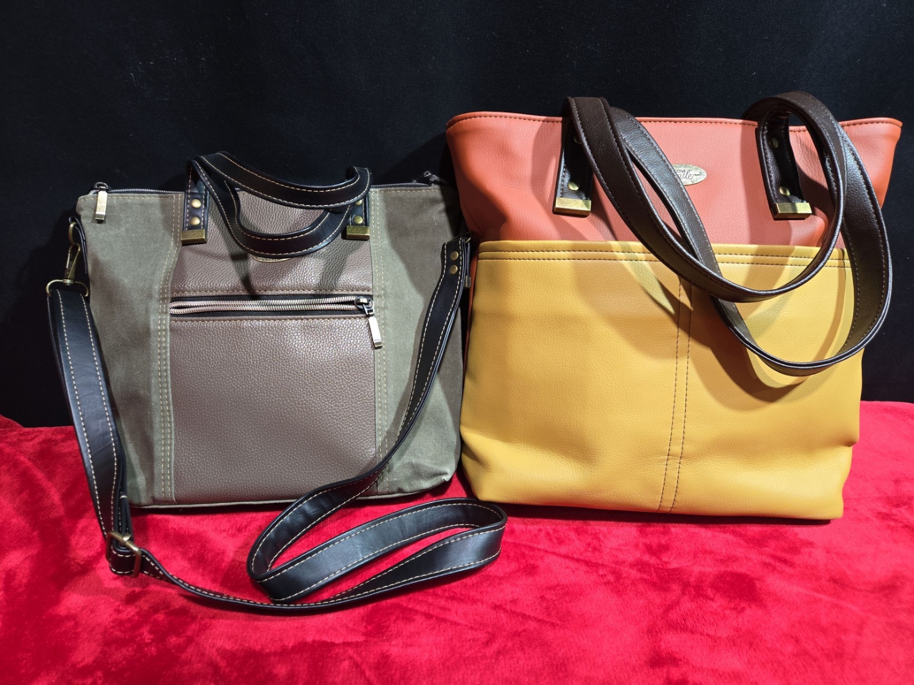 2 Leather Purses, Green with Grey Accents and Yellow with Red Accents