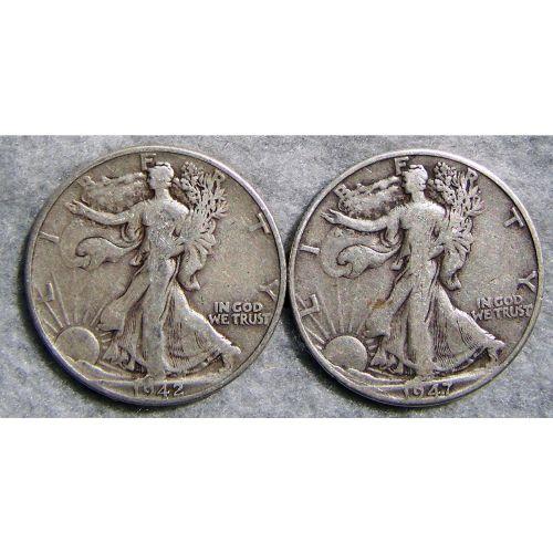 2 Liberty Walking Half Dollars 1942 & 1947D