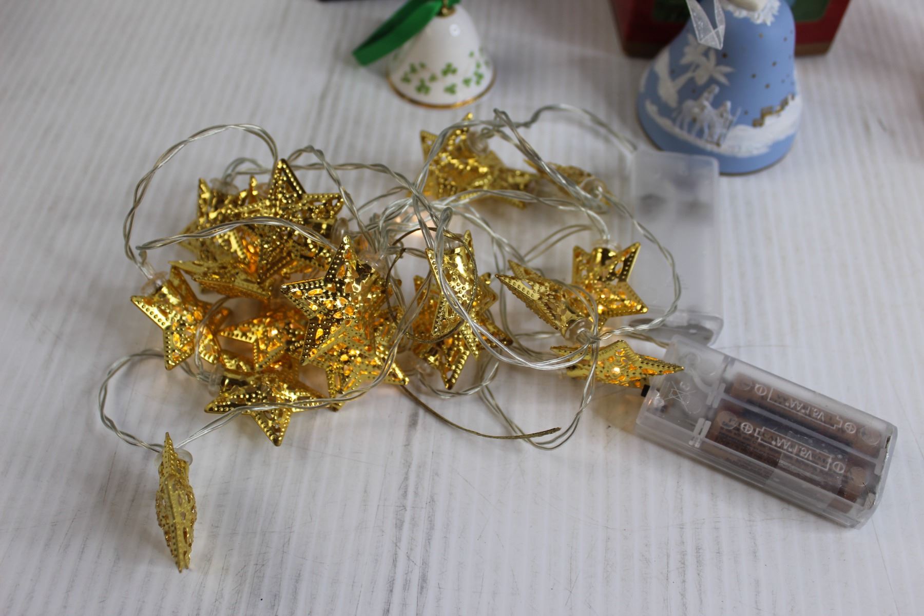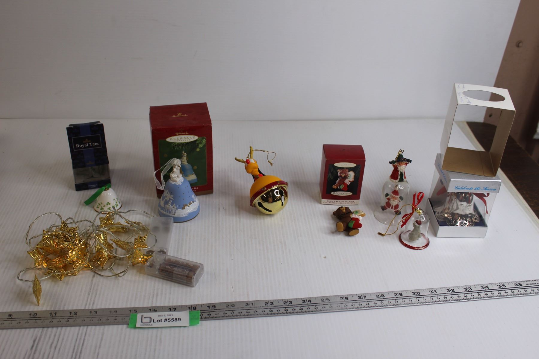 (2) Light Up Star Garland Strands - ([1] Works, [1] Untested), (8) Christmas Ornaments
