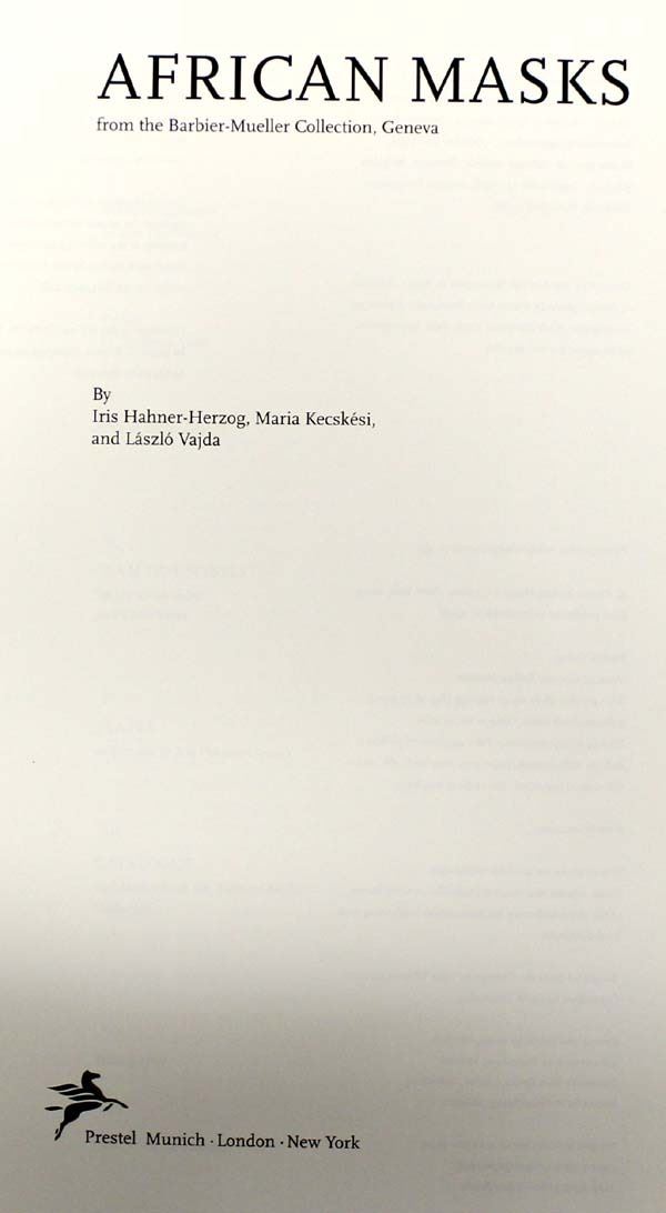 Hummert Estate: 2 Like New Condition Softback Books on Africa, 1. African Masks: from the Barbier-Mueller Collection, Geneva by Iris Hahner-Herzog, Maria Kecskesi, and Laszlo Vajda, c. 2002 Prestel, Munich-London-New York 2. Black Africa: Masks-Sculpture-Jewelry by Laure Meyer, c. 1992 Terrail, Paris
