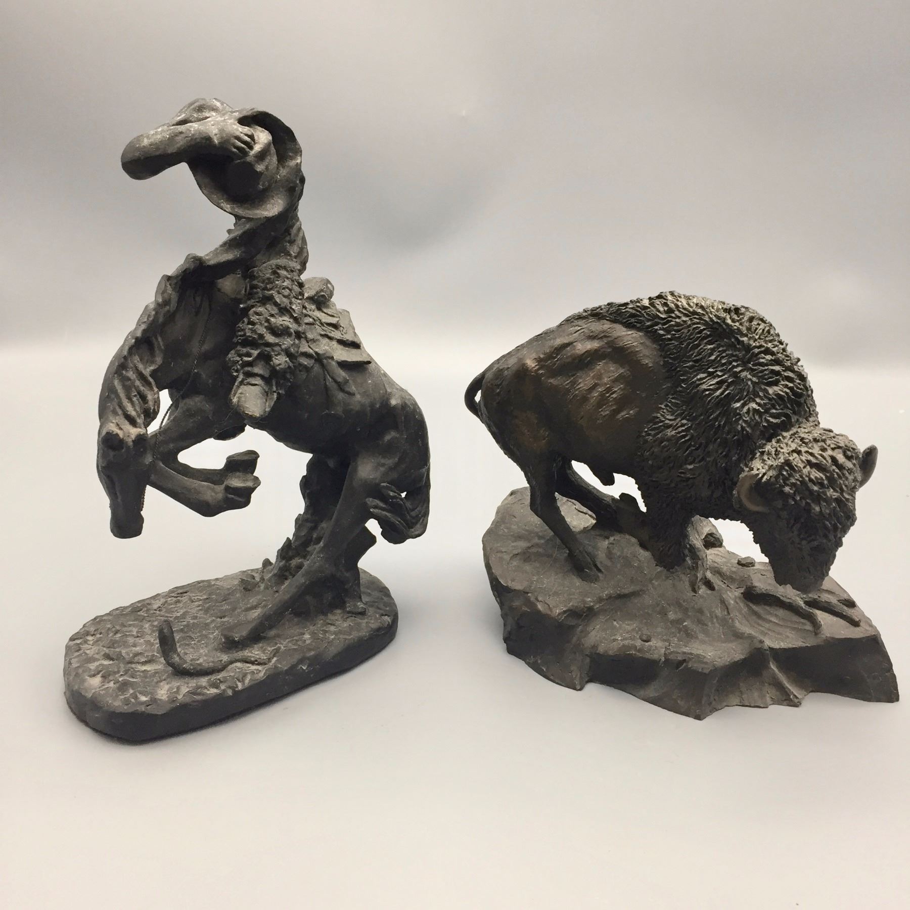 Maker: NE Collectors Society. Approx. Age: Fairly modern. Size: 1) 7” l x 4” w x 6 1/4” h. 2) 6 1/2” l x 3 1/2” w x 9” h. Additional Info: 2 limited edition statues ‘The American Buffalo’ (#0277 of 9500) and ‘The Rattlesnake’ (#00258 of 9500). Condition: Good for their age, Please look closely at the pictures - they are an important part of our description. Shipping: There will be a $8 handling / packaging fee for shipping this lot. The actual cost of postage will be added on top of that.