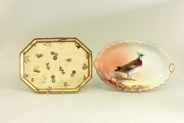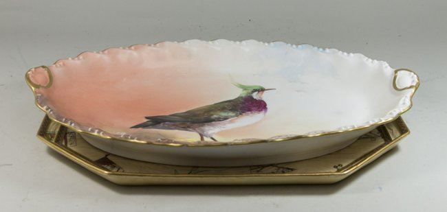 Including Limoges bird tray, artist signed approx. 12" H x 19" W; and Worcester, approx. 13" H x 17" W.