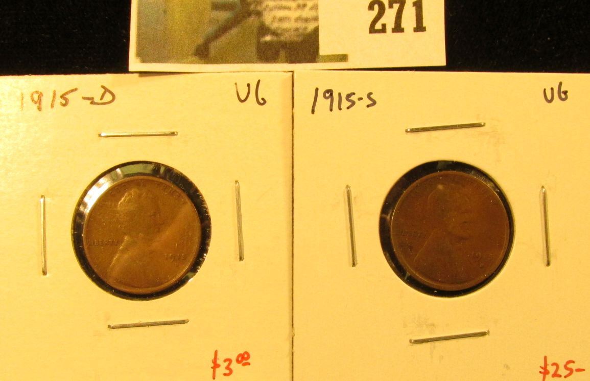 2 Lincoln Cents, 1915-D & 1915-S, both VG, pair value $28