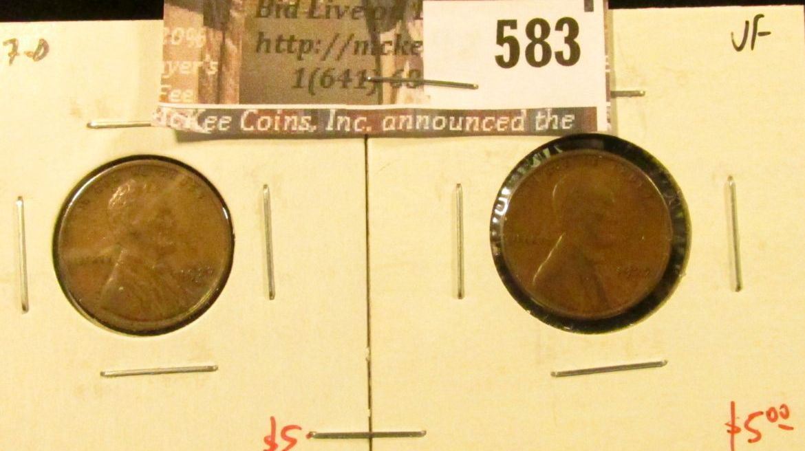 (2) Lincoln Cents, 1927-D VF/XF, 1927-S VF, tough in these grades, value for pair $10