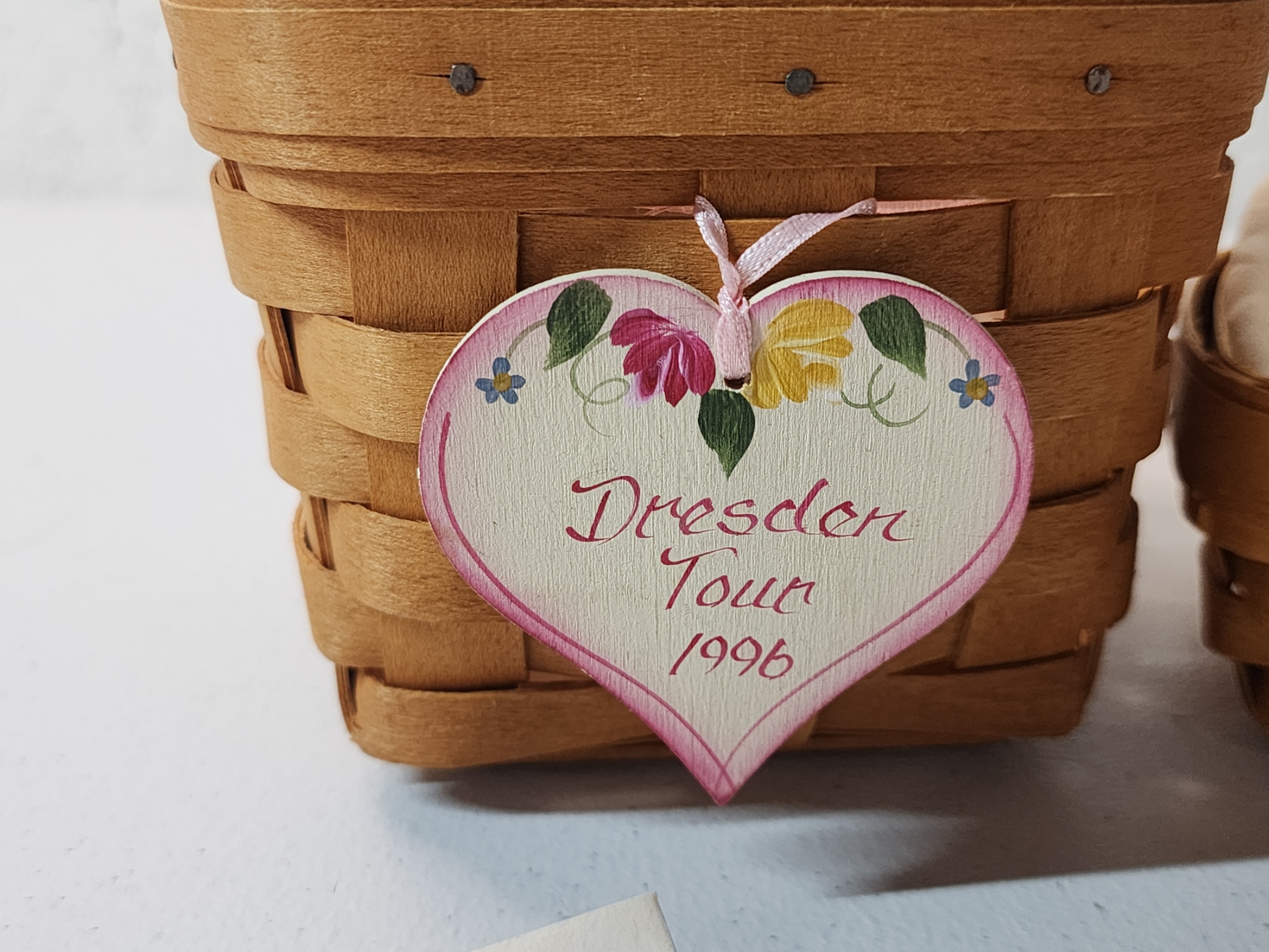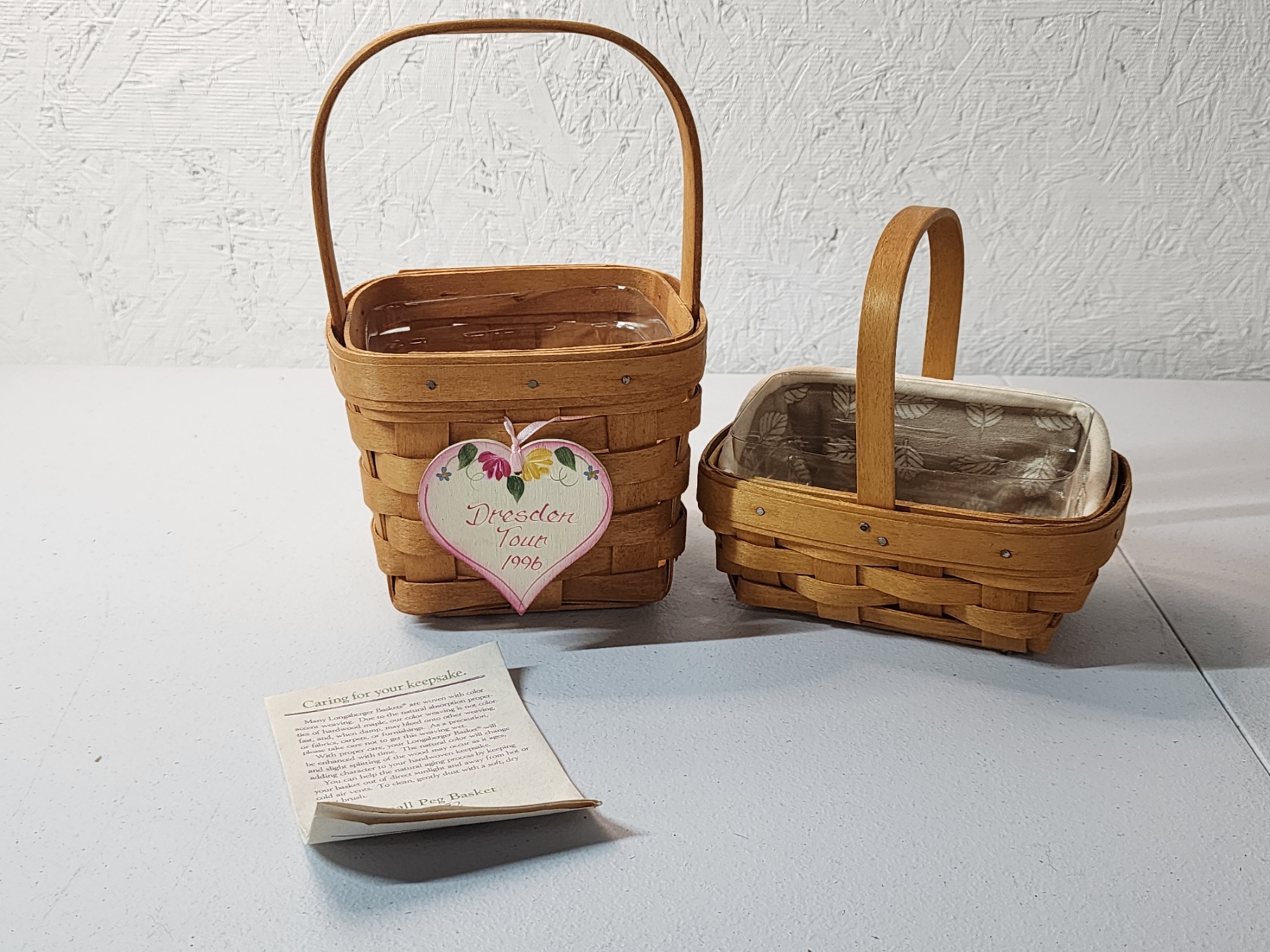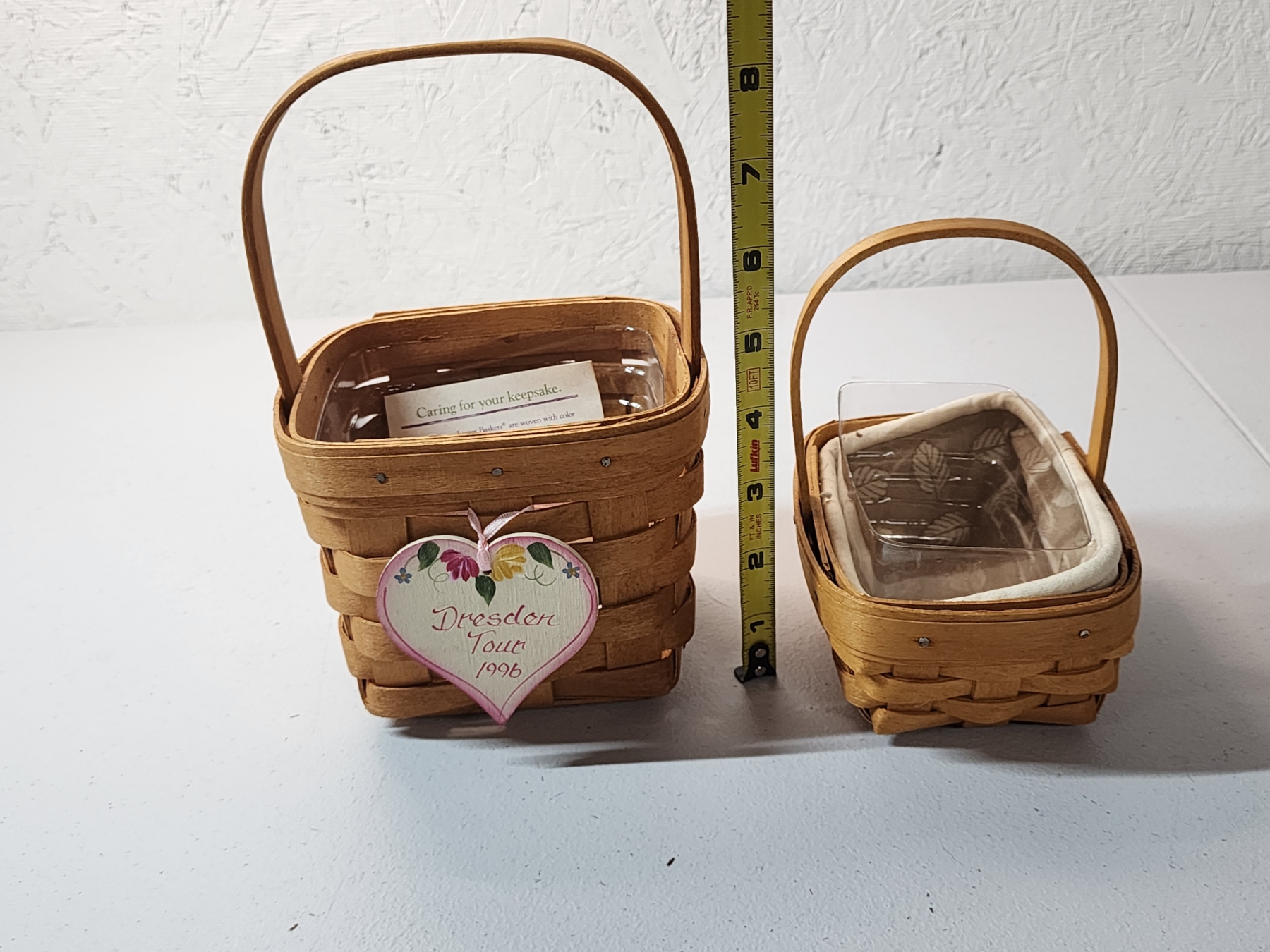 (2) Longaberger Baskets: Dresden Tour Basket & Small Basket - Plastic Liners in Both