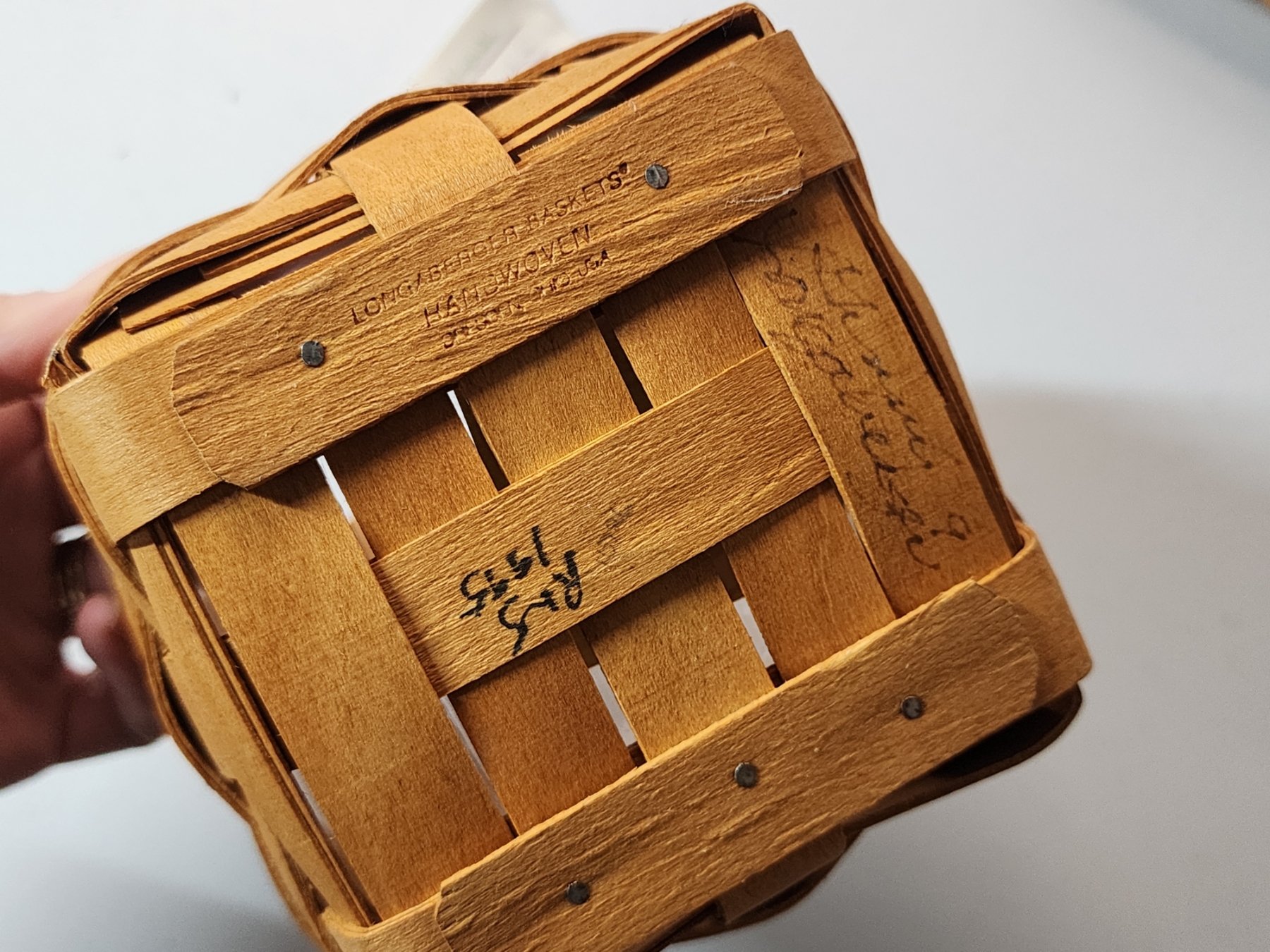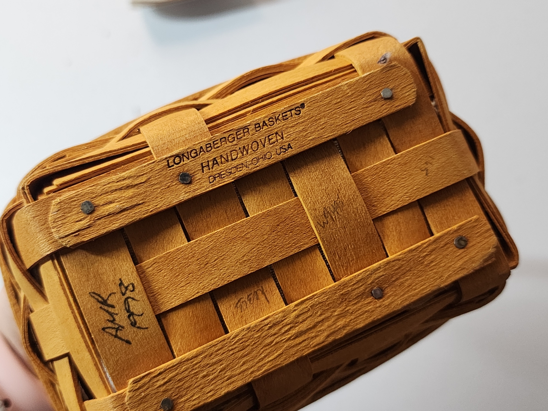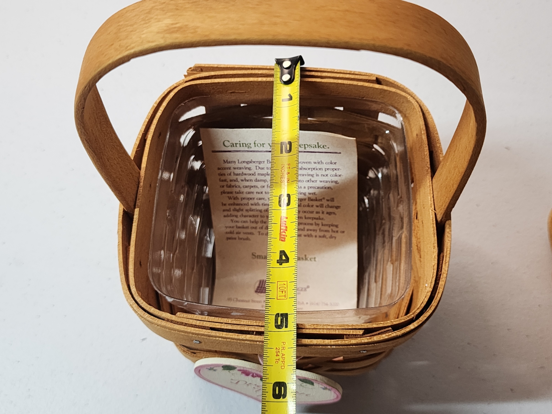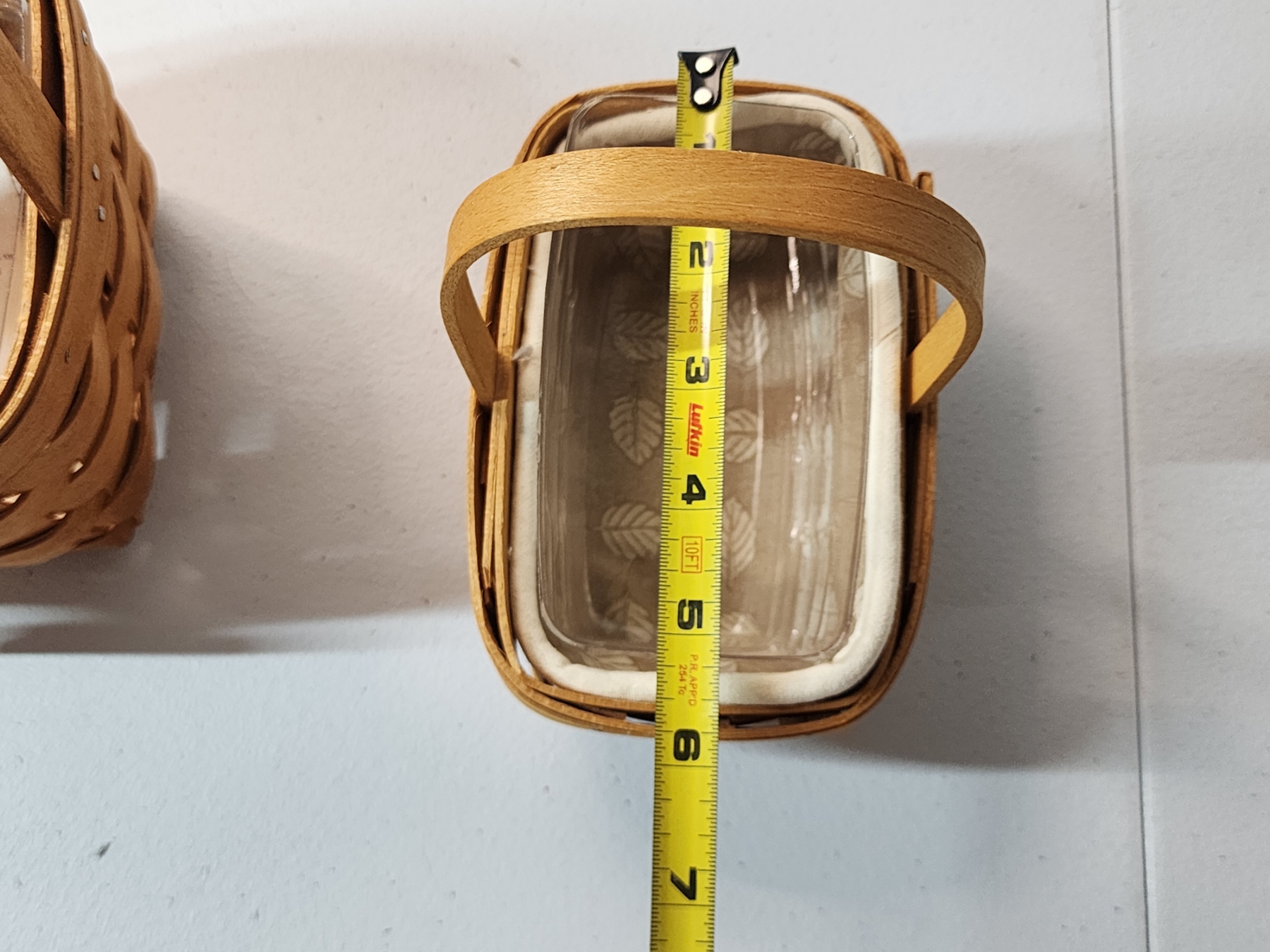 (2) Longaberger Baskets: Dresden Tour Basket & Small Basket - Plastic Liners in Both