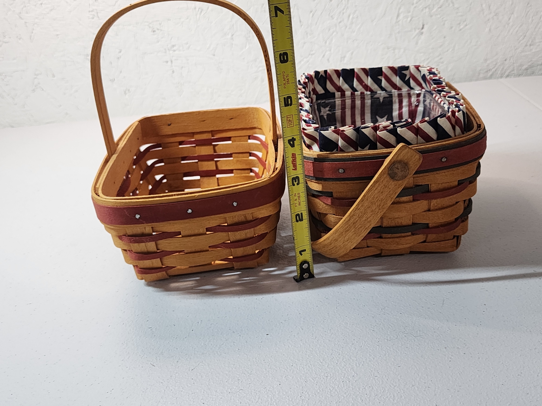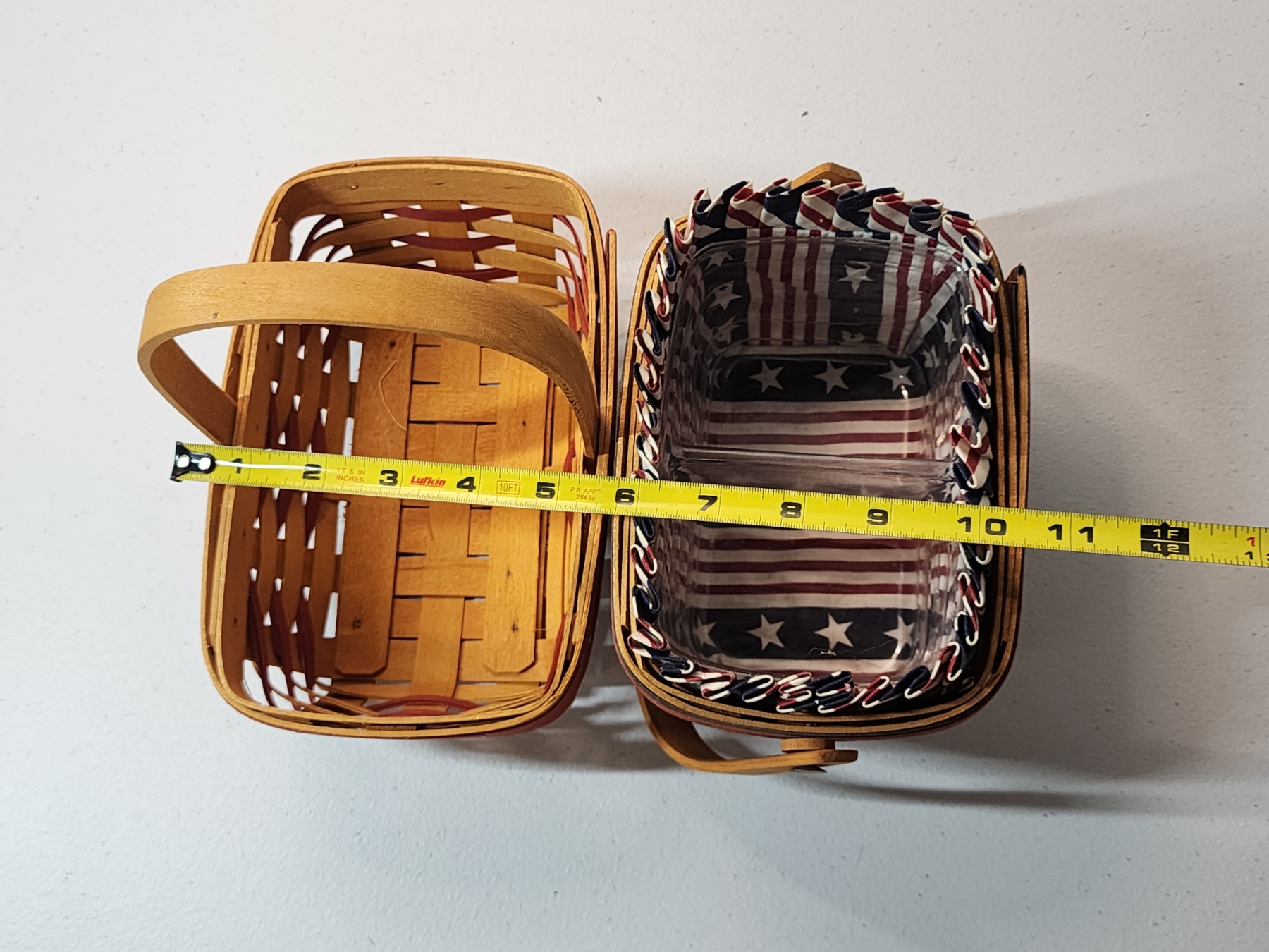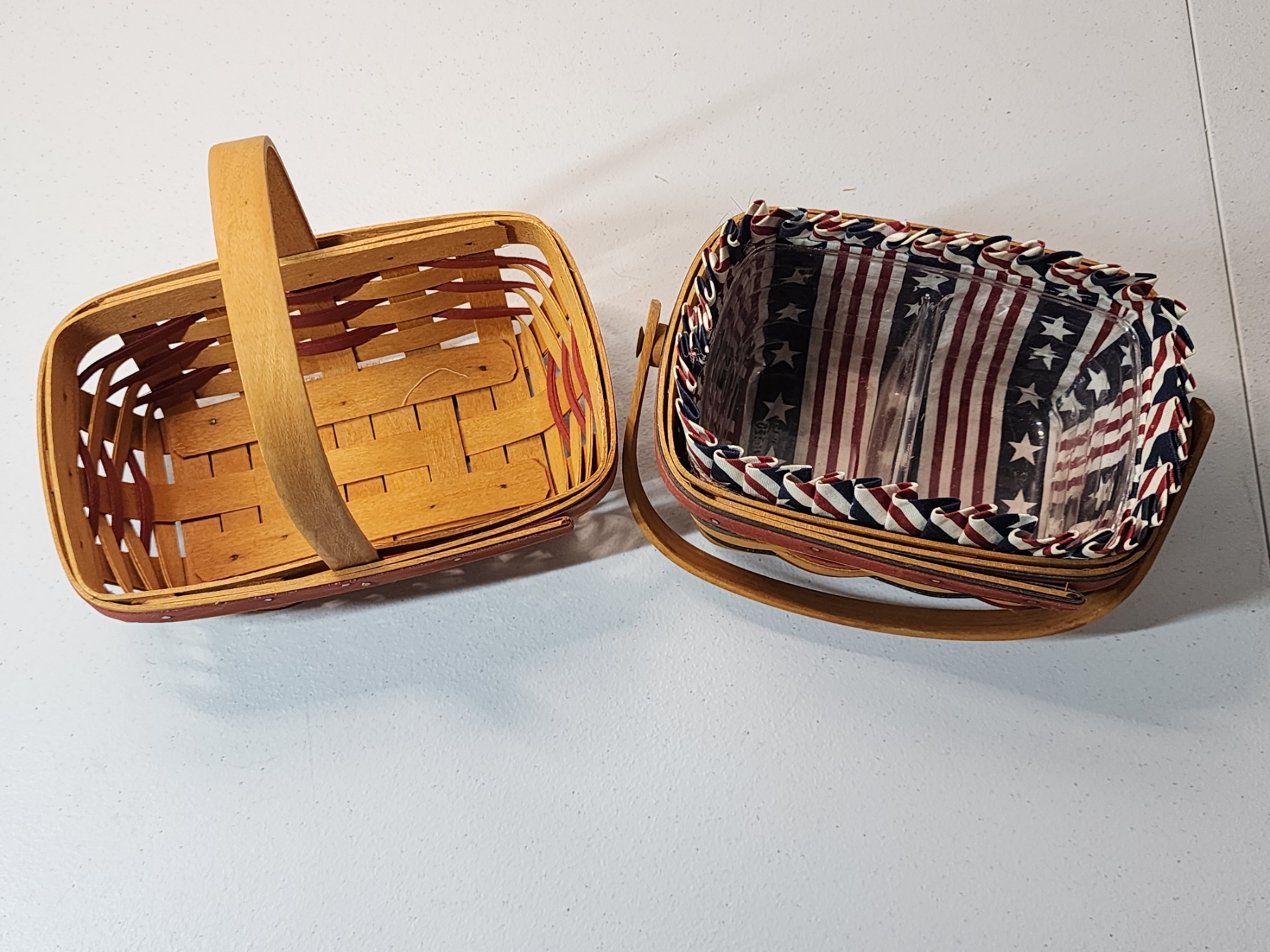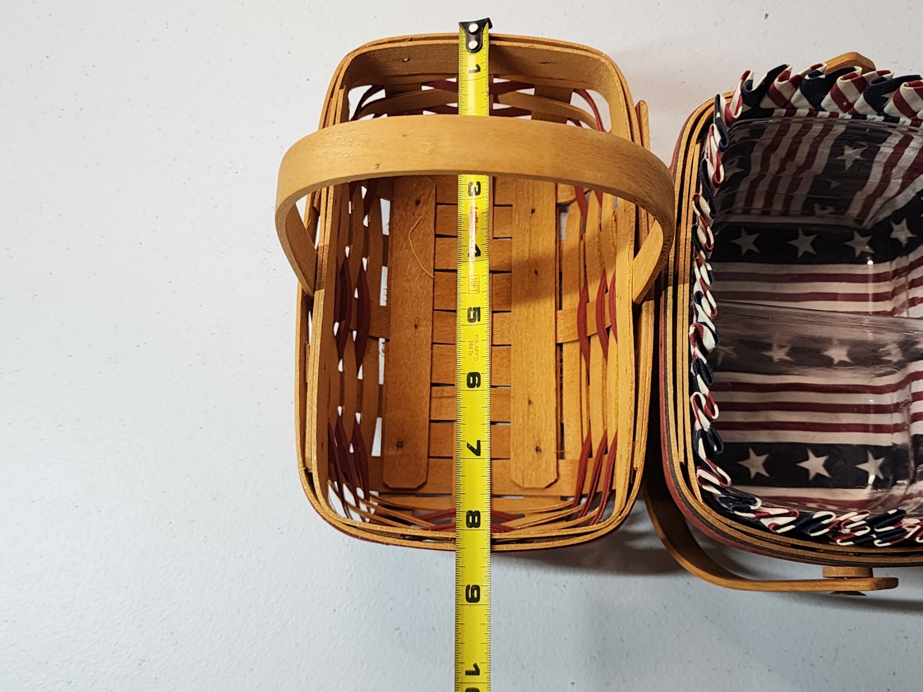 (2) Longaberger Baskets: One w/ American Fabric Liner & Plastic Separated Liner - Excellent Condition