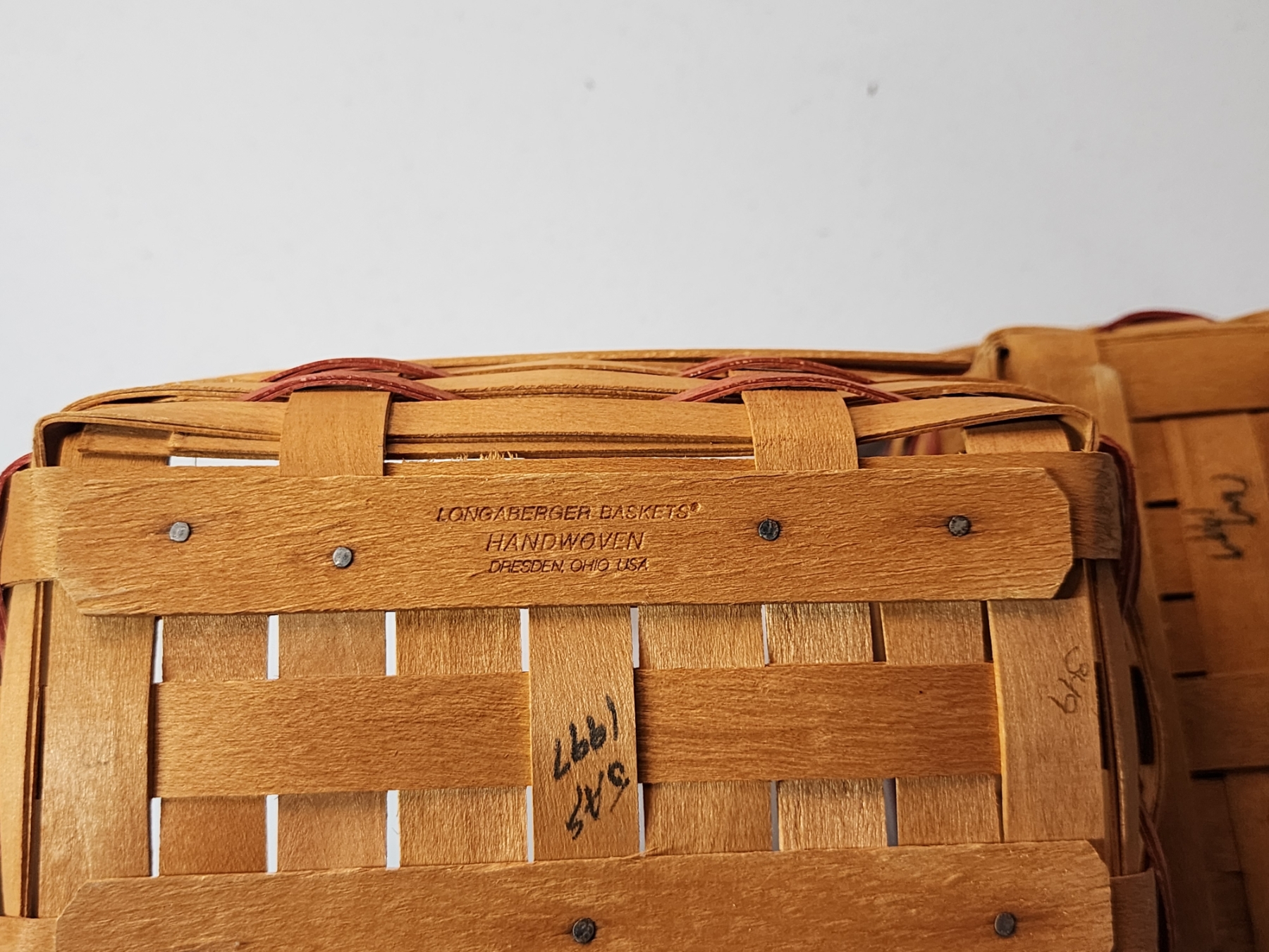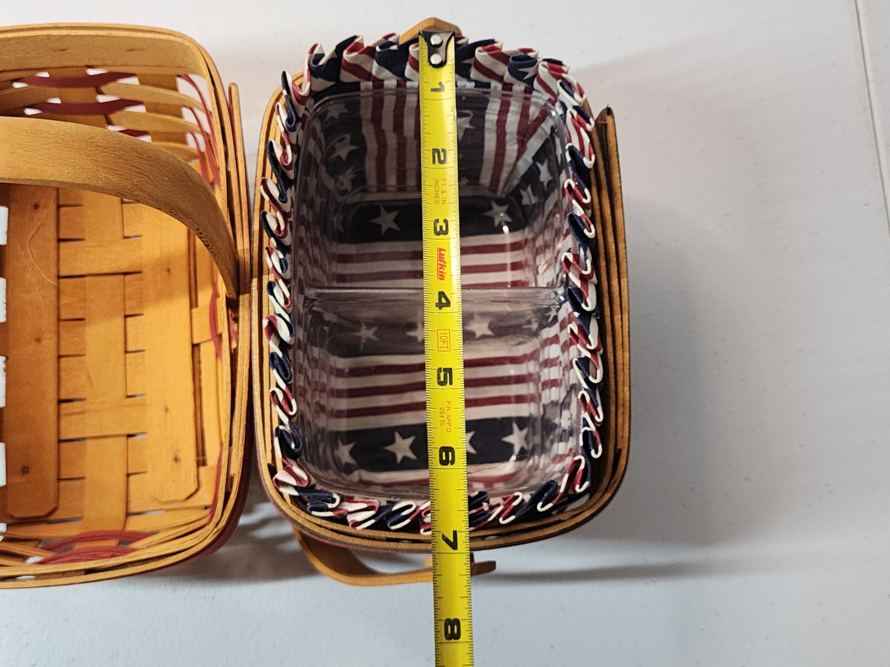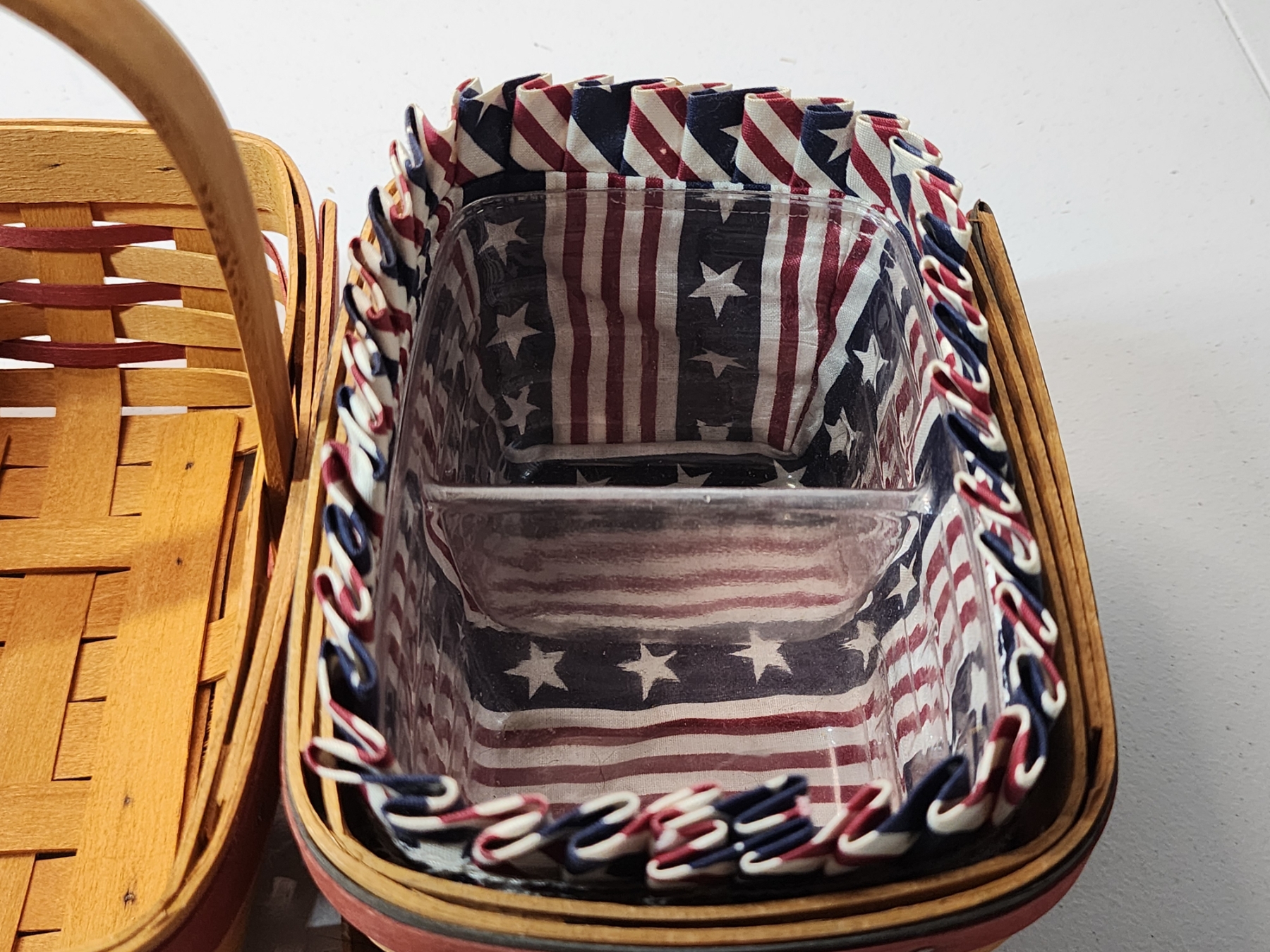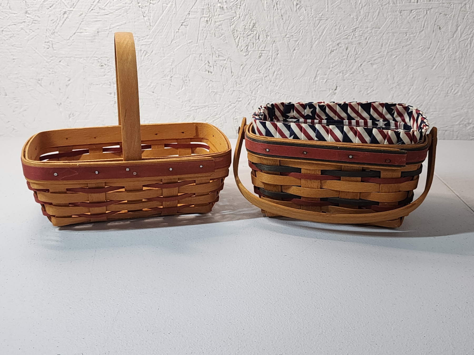 (2) Longaberger Baskets: One w/ American Fabric Liner & Plastic Separated Liner - Excellent Condition