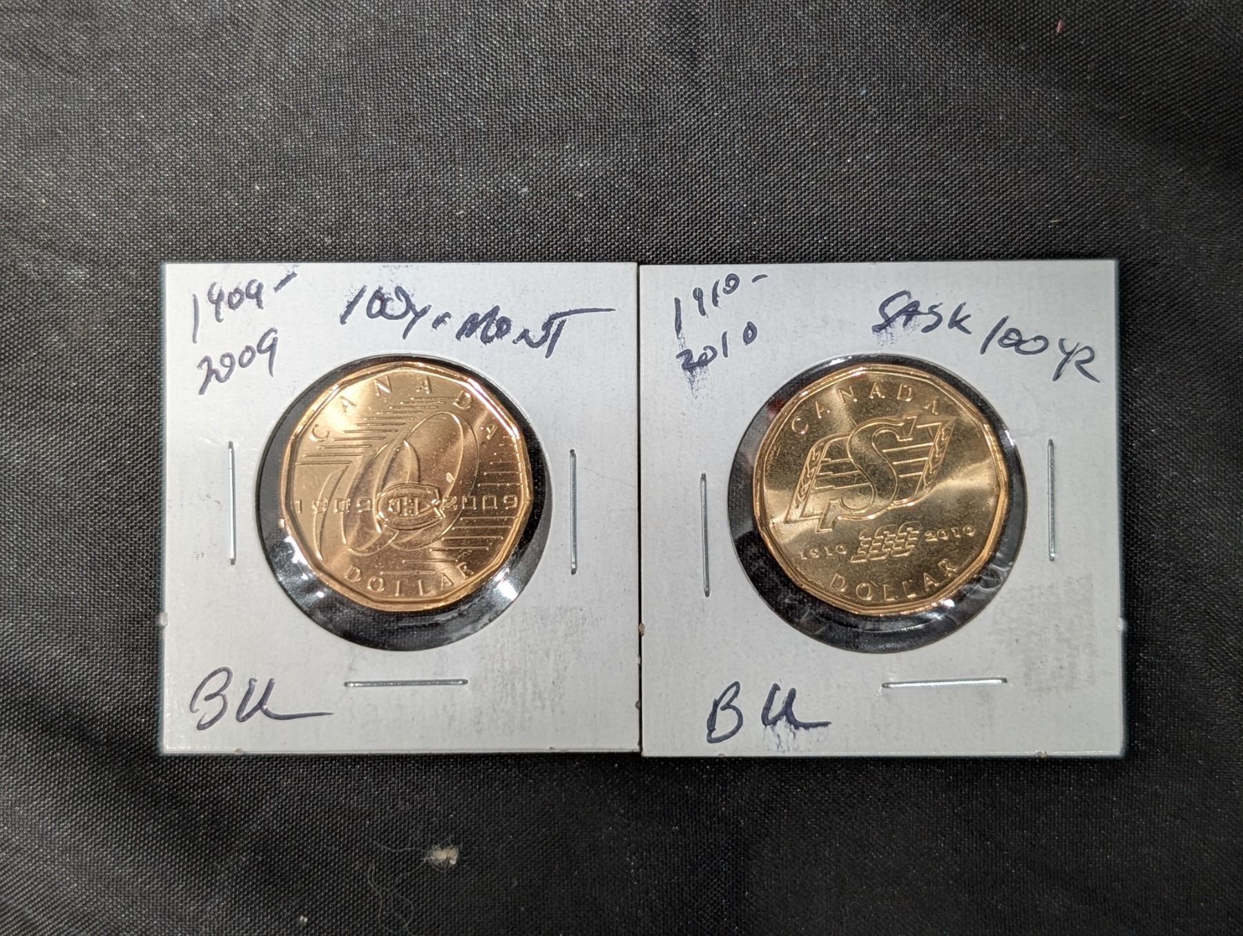 (2) Loonies (1) 1909-2009 BU 100yr (1)1910-2010 BU Sask 100yr