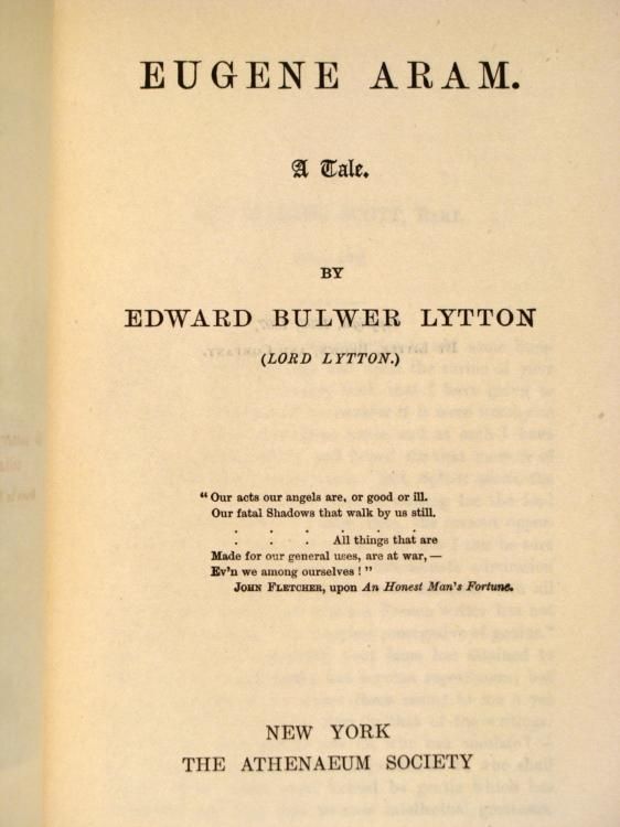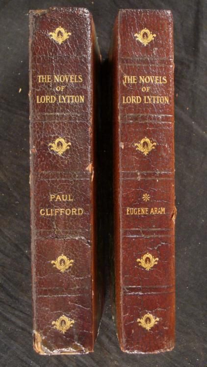 Two late 19th century tales of murder and criminal justice. * Author: Lord Edward Bulwer LyttonSeries: "The Novels of Lord Lytton"Presented by: The Athenaeum Society, New YorkPublisher: Little, Brown and CompanyDimensions: 5 3/4 x 8 1/2 inchesDetails: Gilt and marble cover, and gilt lettering; single illustrated plate at the beginning of each volumeTitles: * "Eugene Aram" published 1897 * "Paul Clifford" published 1897 * Conditions: Spine cover and corner wear, cover repair, as shown; pages good and intact