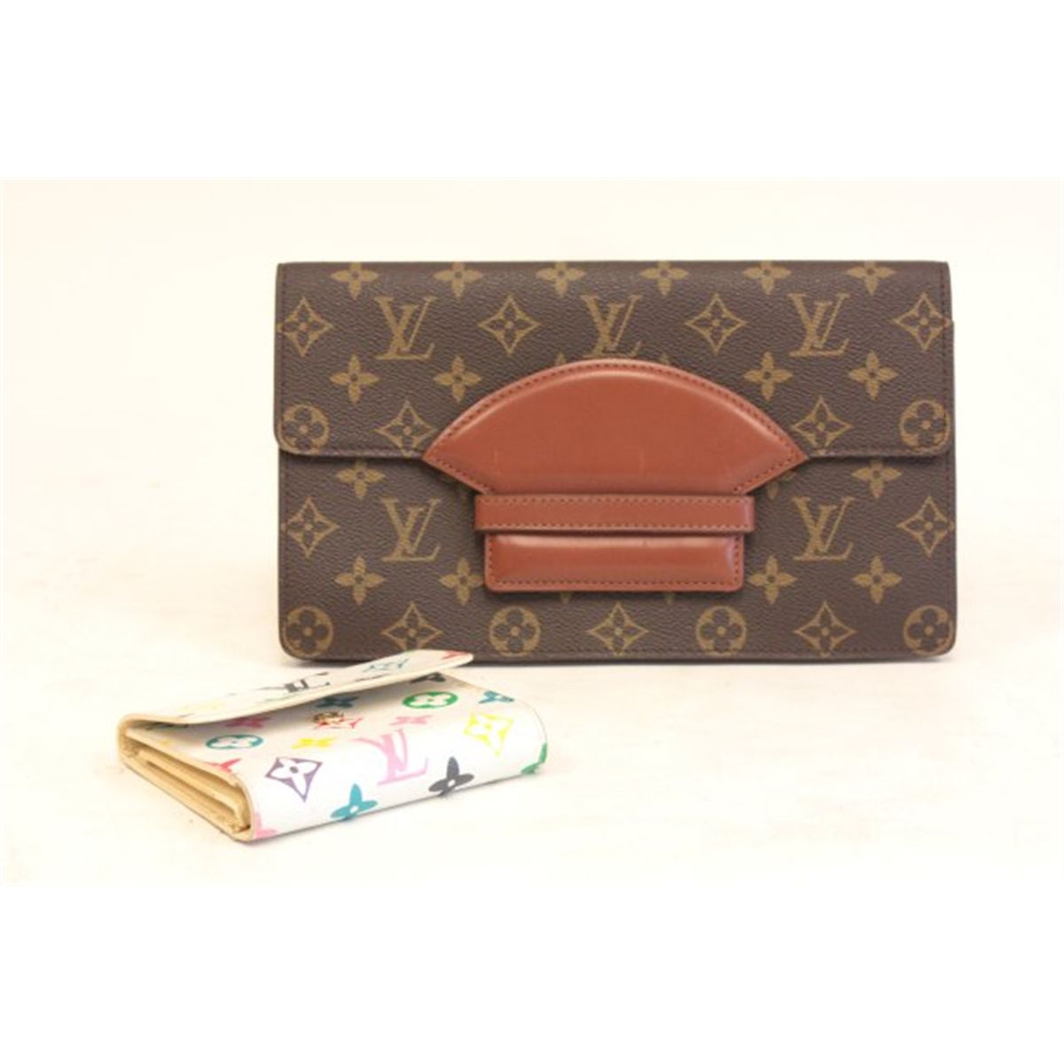 1- Clutch purse, approx. 6.25" x 10" W. 1- French purse, boxed, approx. 3.75" x 4.5". Please read our terms of sale.