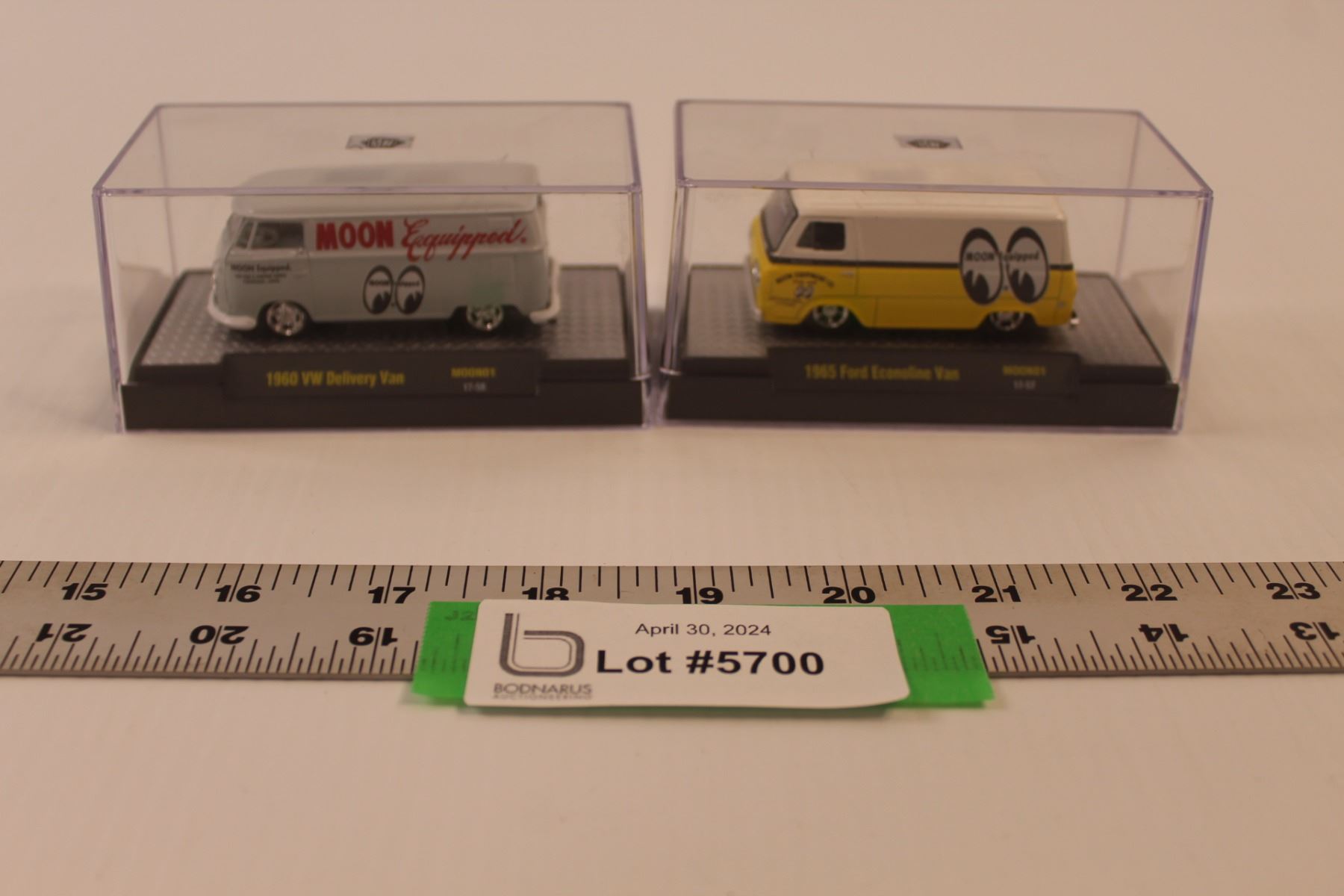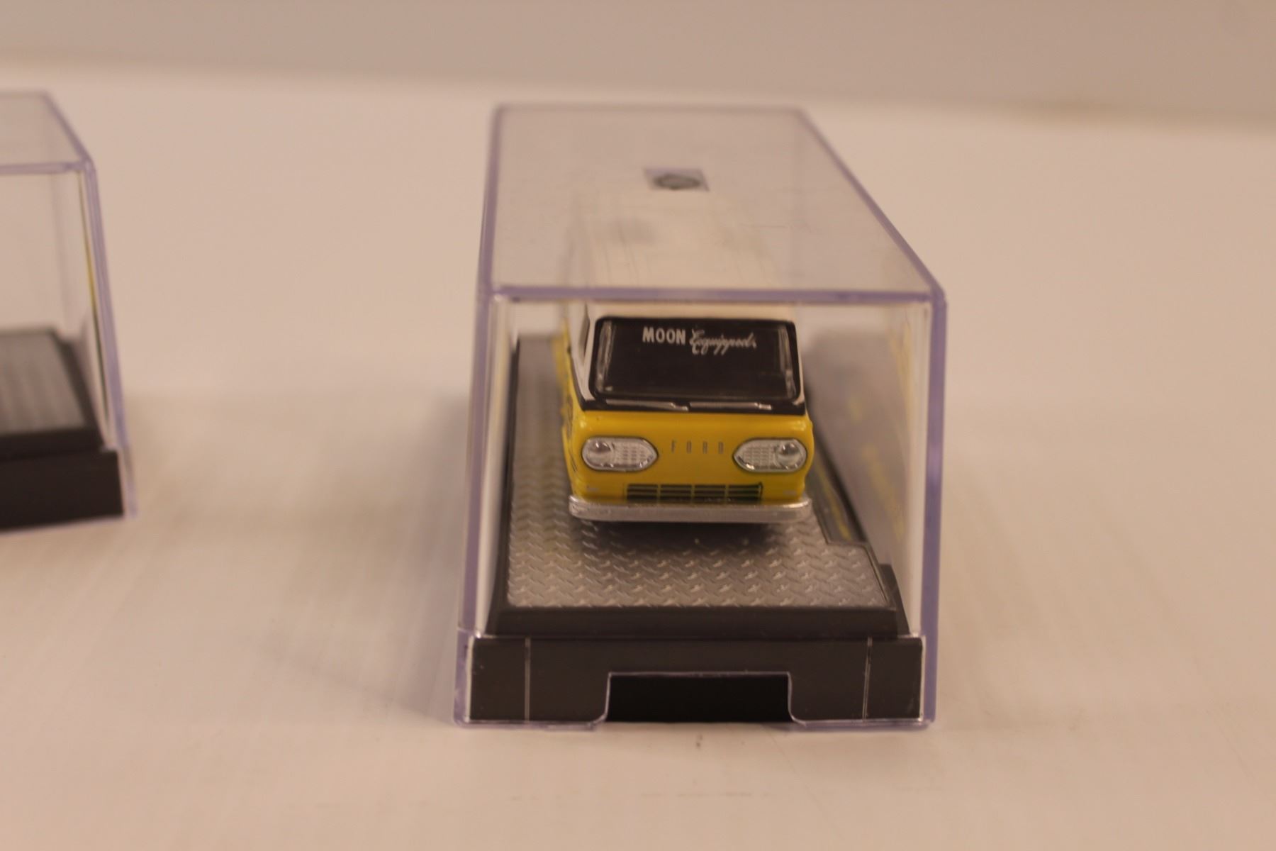 (2) M2 MOONO1 Delivery Vans w/Display Cases(1:64 Scale) - 1960 VW & 1965 Ford Econoline