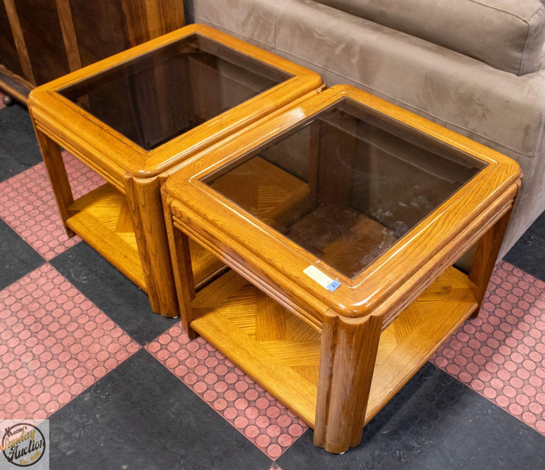 2 MATCHING GLASS TOP END TABLES 20"X23"X26"
