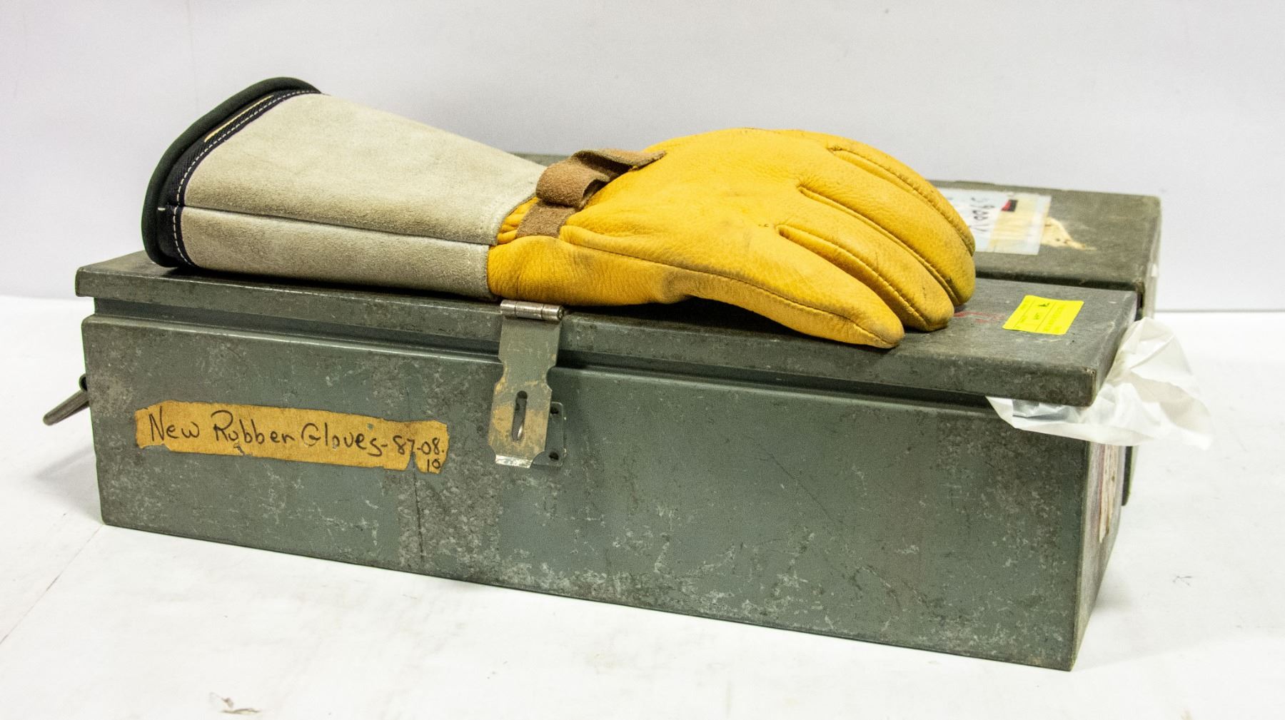 2 METAL BOXES WITH ELECTRICAL GLOVES