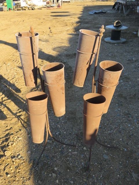 2 METAL PLANT STANDS C/W 3 POTS EACH