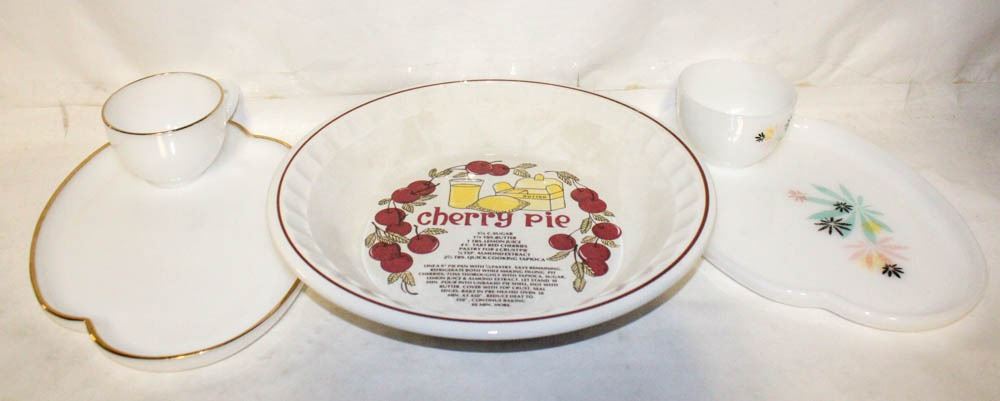 2 MILK-GLASS SANDWICH TRAYS WITH CUPS