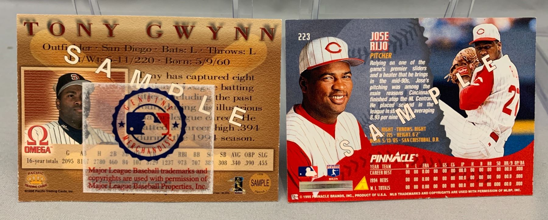 (2) MLB Sample Baseball Cards: Tony Gwynn & Jose Rijo Rare