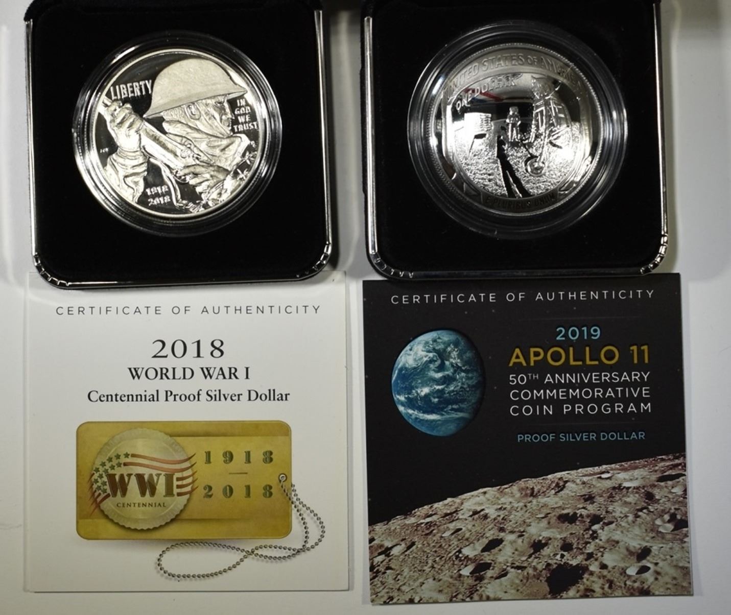 2018 WWII CENTENNIAL & 2019 APOLLO 50th ANNIV. IN ORIGINAL PACKAGING ESTIMATE $100 - $120.