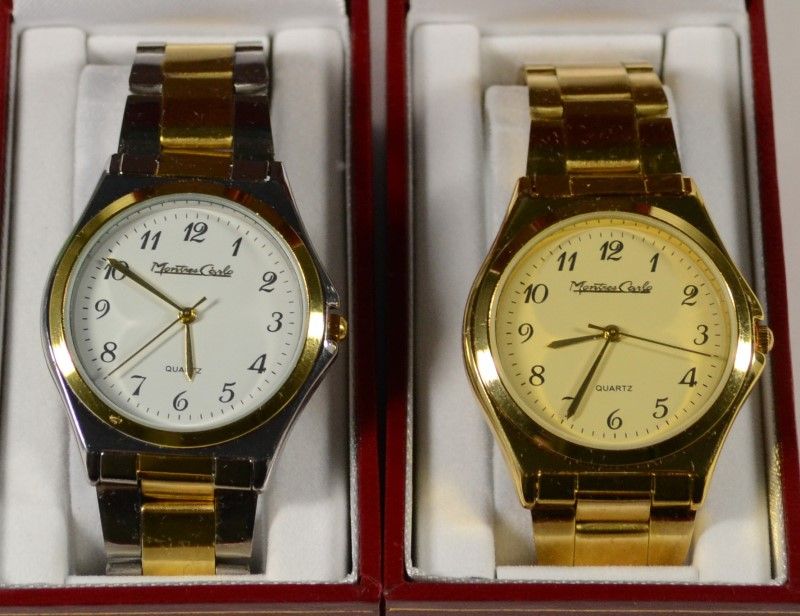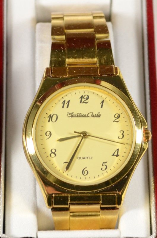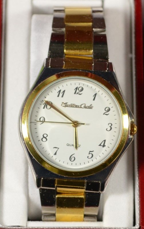 WHITE DIAL SILVER/GOLD 2 TONE LINKED BAND GOLD HANDS BATTERY INCLUDED & GOLD DIAL GOLD TONED LINKED BAND GOLD HANDS BATTERY OPERATED -- Battery not included. BOTH STAINLESS STEEL BACK, WATER RESISTANT. EST 60.00-70.00