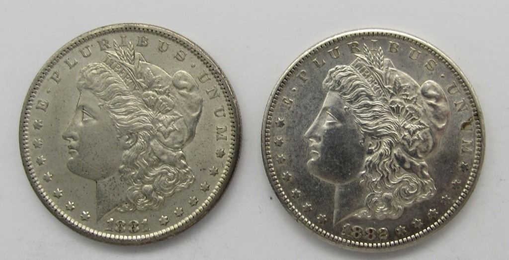 2-MORGAN SILVER DOLLAR 1881-S, '82-S
